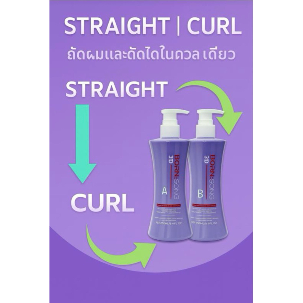 น้ำยายืดผม ดัดผม BORN-SONG 3D สูตรผมอ่อนแอ-ปานกลาง 3in1 ใช้ยืดผม ดัดผม ดัดดิจิตอล ดัดเย็น