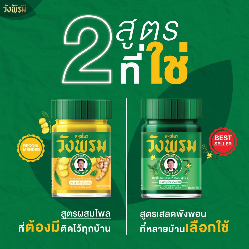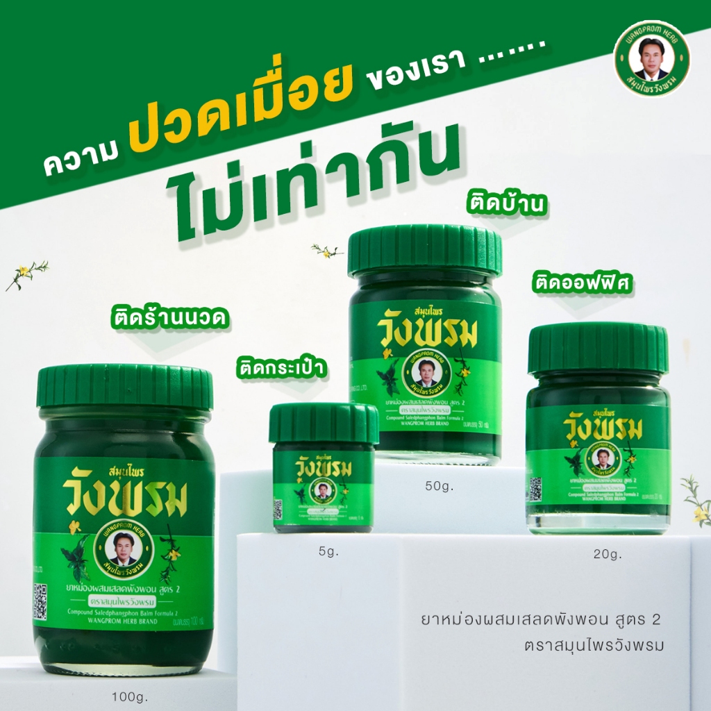 สมุนไพรวังพรม(WangProm) น้ำมันเหลือง / น้ำมันเขียว / ยาหม่องผสมเสลดพังพอน / ยาหม่องผสมไพล รวมทุกขนาด