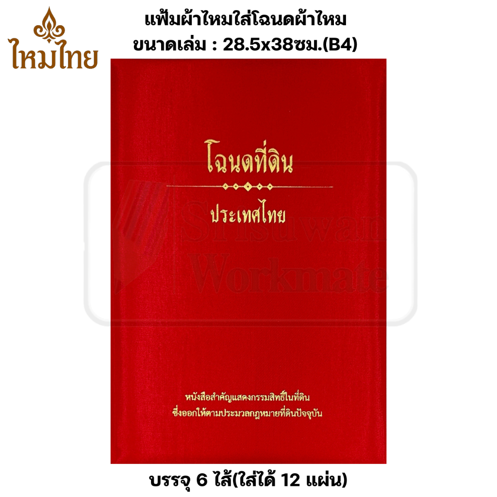 ไหมไทย แฟ้มโฉนดปกผ้าไหม 6ไส้(ใส่ได้12แผ่น) ขนาด 28.5x38ซม.(B4) แฟ้มใส่โฉนด ปกผ้าไหม ปกเรียบพิมพ์ทอง