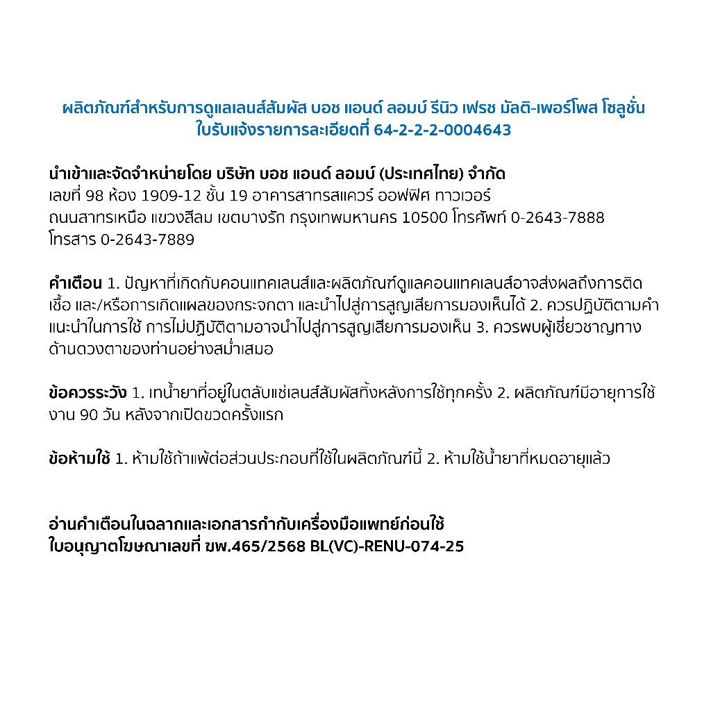 Bausch & Lomb RENU Fresh น้ํายาทําความสะอาดคอนแทคเลนส์ มัลติ-เพอร์โพสโซลูชั่น ขนาด 120 ml.