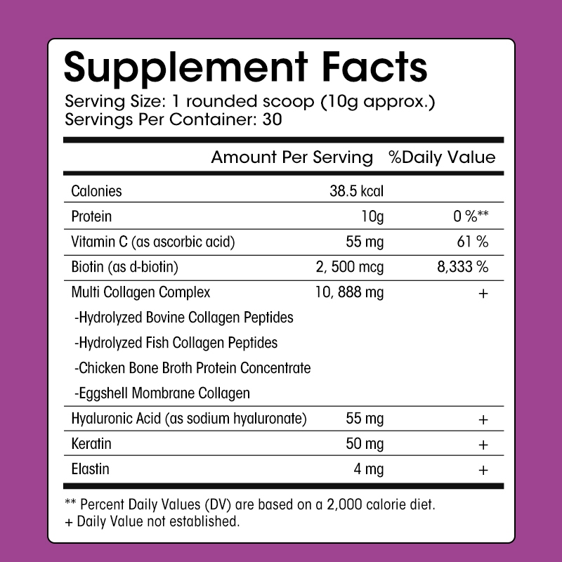 Kexinsh Multi Collagen Peptides Powder Type I, II, III, V, X, Hydrolyzed Collagen, Hyaluronic Acid Power, Biotin, Vitamin C, รองรับผิว, ไม่ปรุงแต่ง, ละลายได้อย่างง่ายดาย