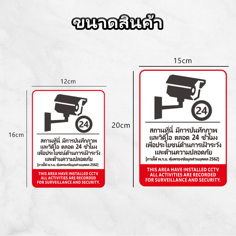 ป้าย/สติกเกอร์ สติกเกอร์กล้องวงจรปิด CCTV 24ชม. ป้ายเตือนมีกล้องวงจรปิด วัสดุ PVC กันน้ำ 100% ทนแดด ติดทนนาน