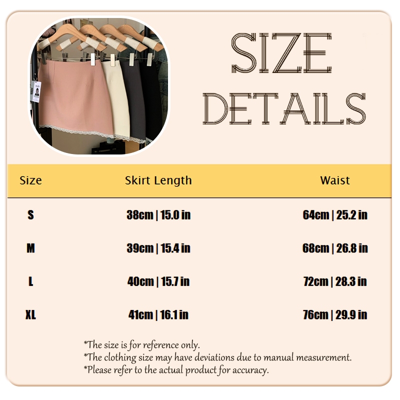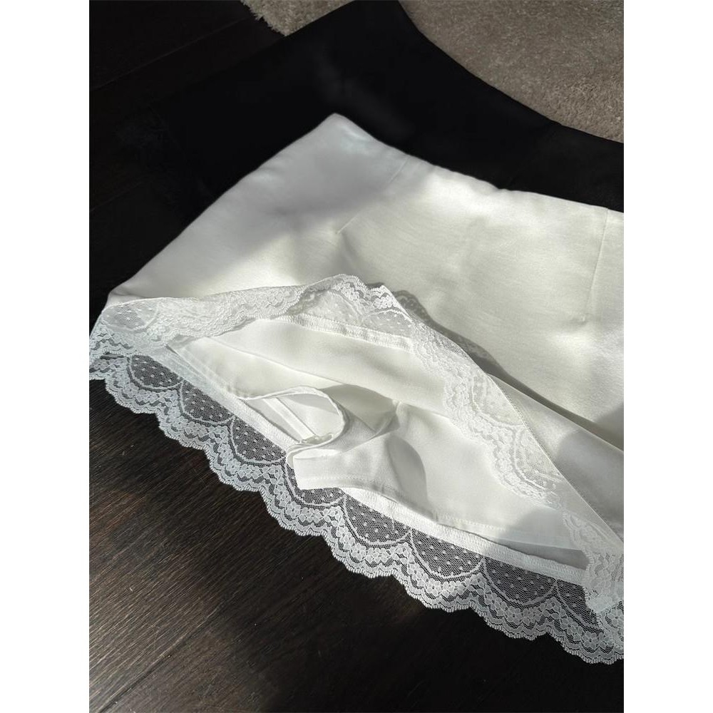 Chili Koko กระโปรงผู้หญิง สีพื้น แต่งลูกไม้ กระโปรงผ้าซาติน (มีซับใน) 99067