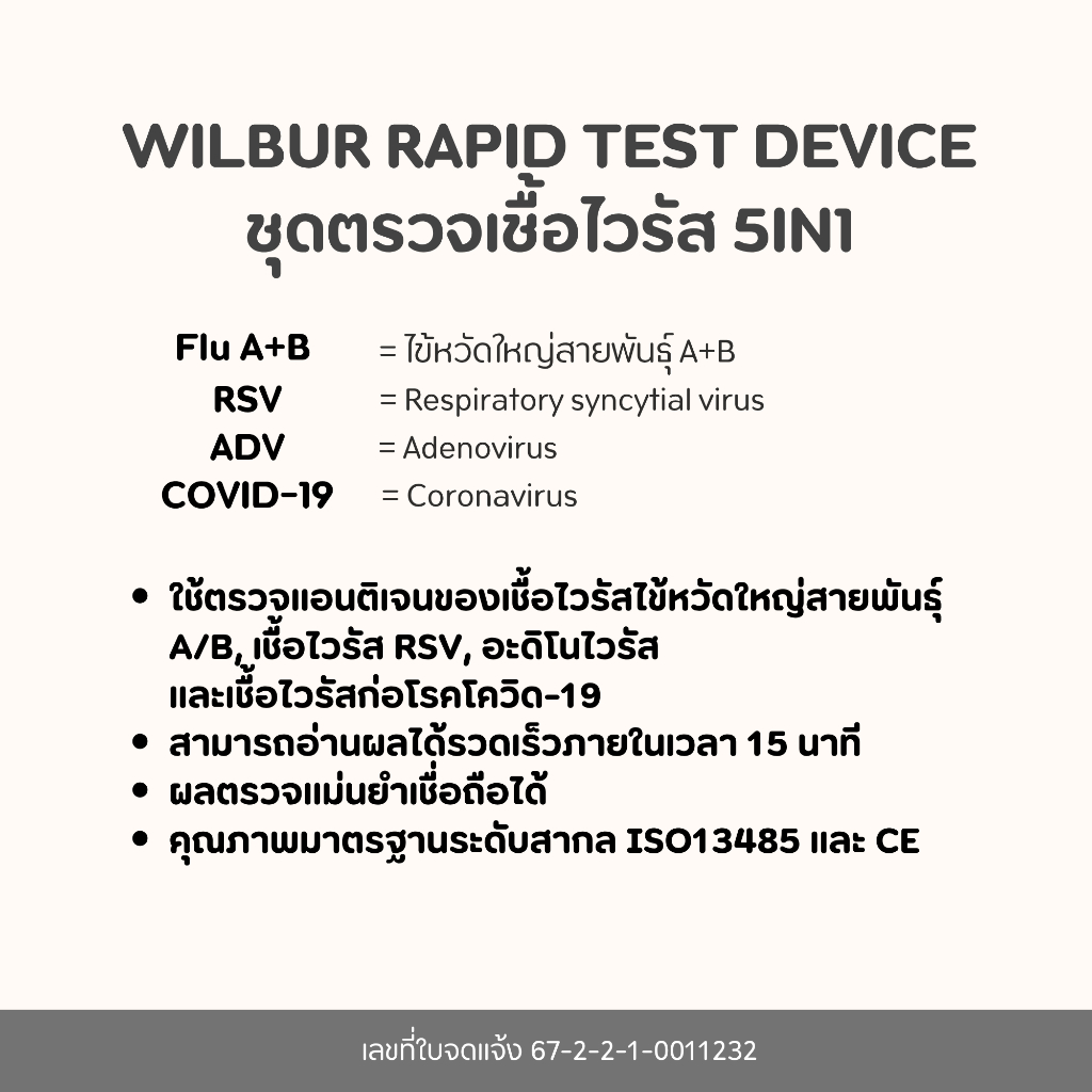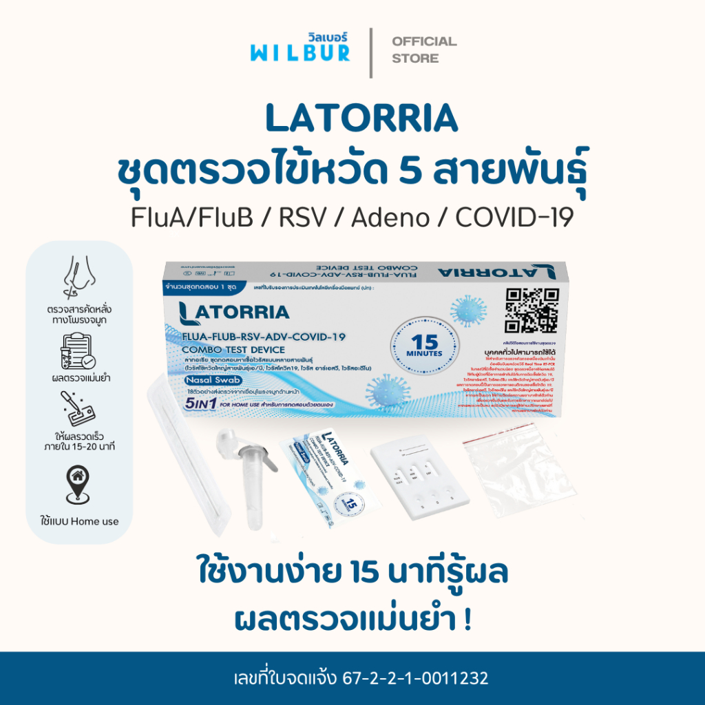 ชุดตรวจไข้หวัดใหญ่เอ+บี Latorria 5 in 1 ชุดตรวจหาCovid-19 ไข้หวัดใหญ่ FluA+B RSV+ADV ตรวจง่าย รับรู้ผลไวได้มาตรฐาน