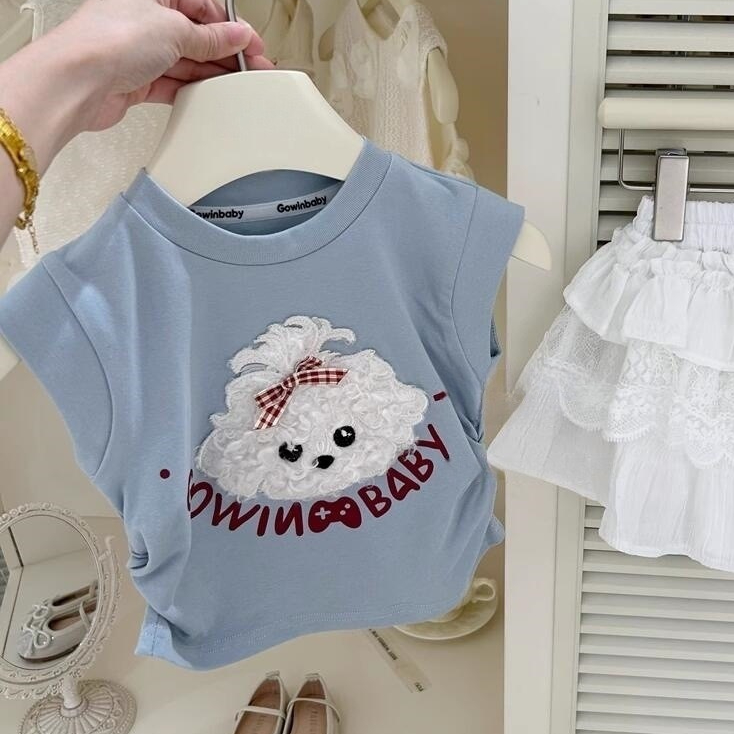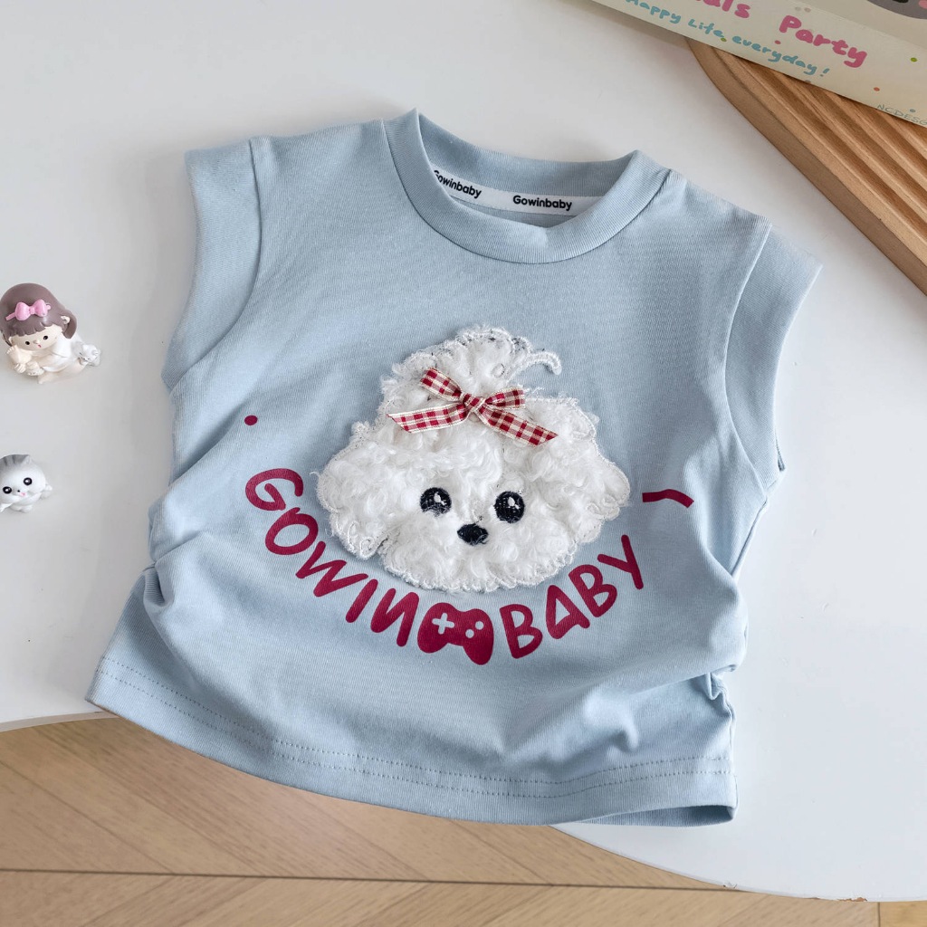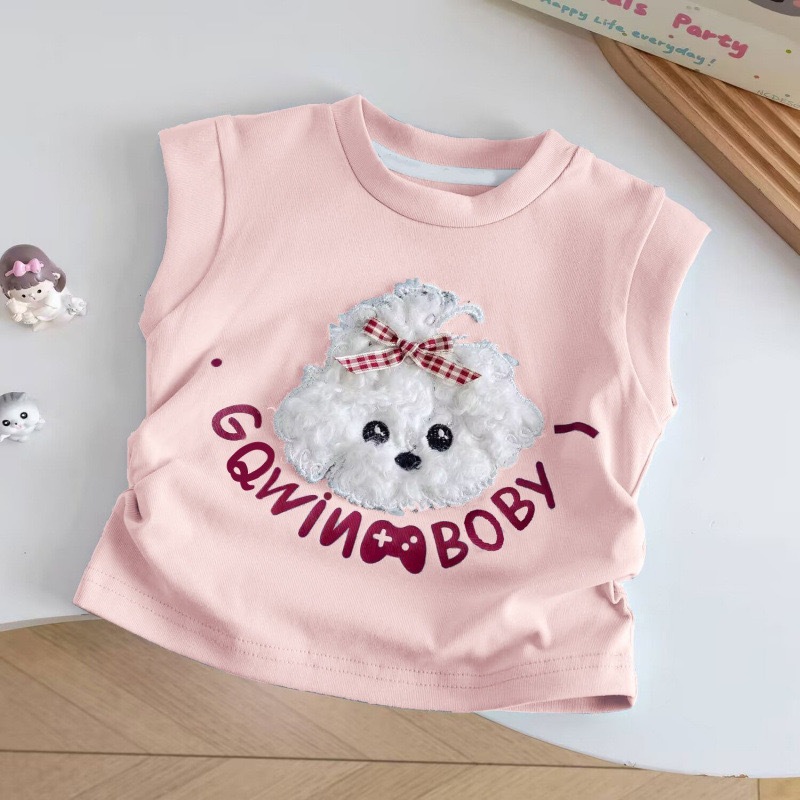 Babyonline(Y240)A2 (ส่งด่วน1วัน)เสื้อยืดคอกลมแขนกุดสำหรับเด็กผู้หญิงลายน้องหมาสุดน่ารัก ผ้าฝ้าย นิ่ม