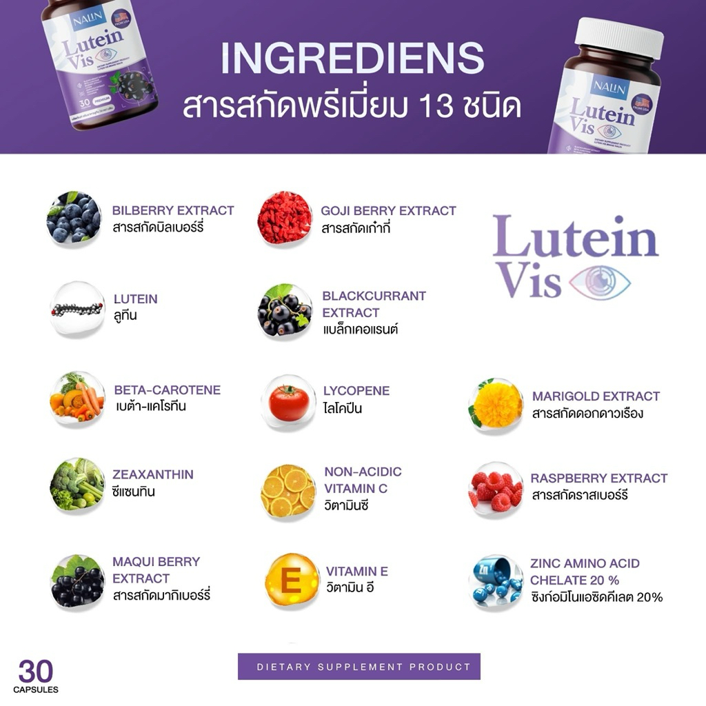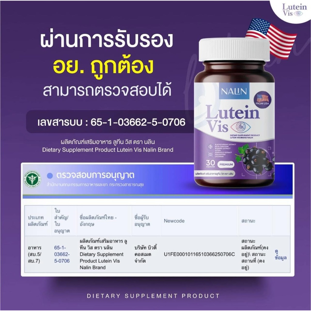 ผลิตภัณฑ์เสริมอาหาร นลินลูทีนวิส Nalin Lutein Vis ดูแลสูขภาพตา (30แคปซูล)