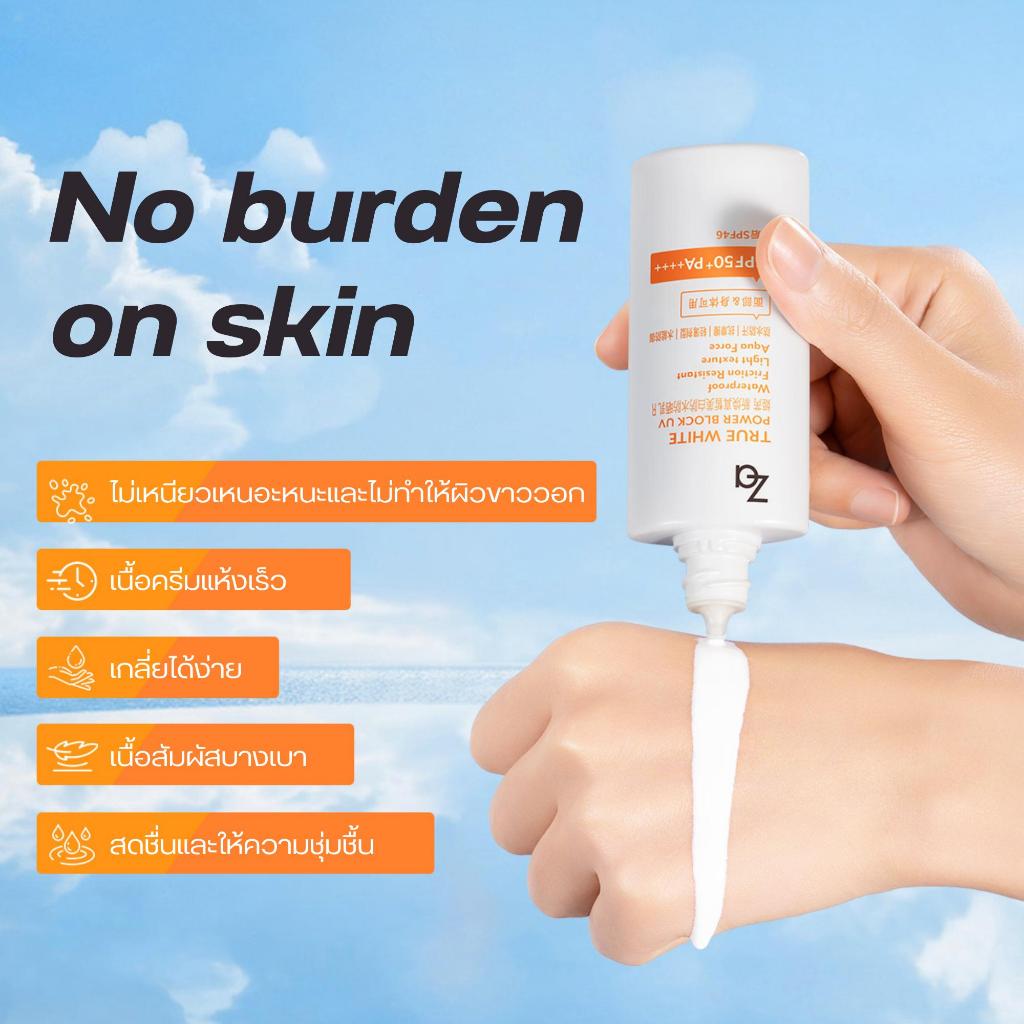 Za Sunscreen ครีมกันแดด กันน้ำและกันเหงื่อ เนื้อสัมผัสบางเบา ทรูไวท์ พาวเดอร์ บล็อค ยูวี อาร์ SPF50 PA++++ (50 มล.)