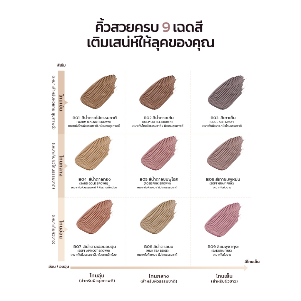 【สีสวยทันที】JMCY เจลเขียนคิ้วเนื้อแมตต์กำมะหยี่ ติดทนนาน 12 ชั่วโมง กันเหงื่อ หัวแปรง 15° สร้างคิ้วที่ดูเป็นธรรมชาติและสวยงาม สินค้าขายดี Matte Velvet Eyebrow Tint Multi-Color Eyebrow Tint