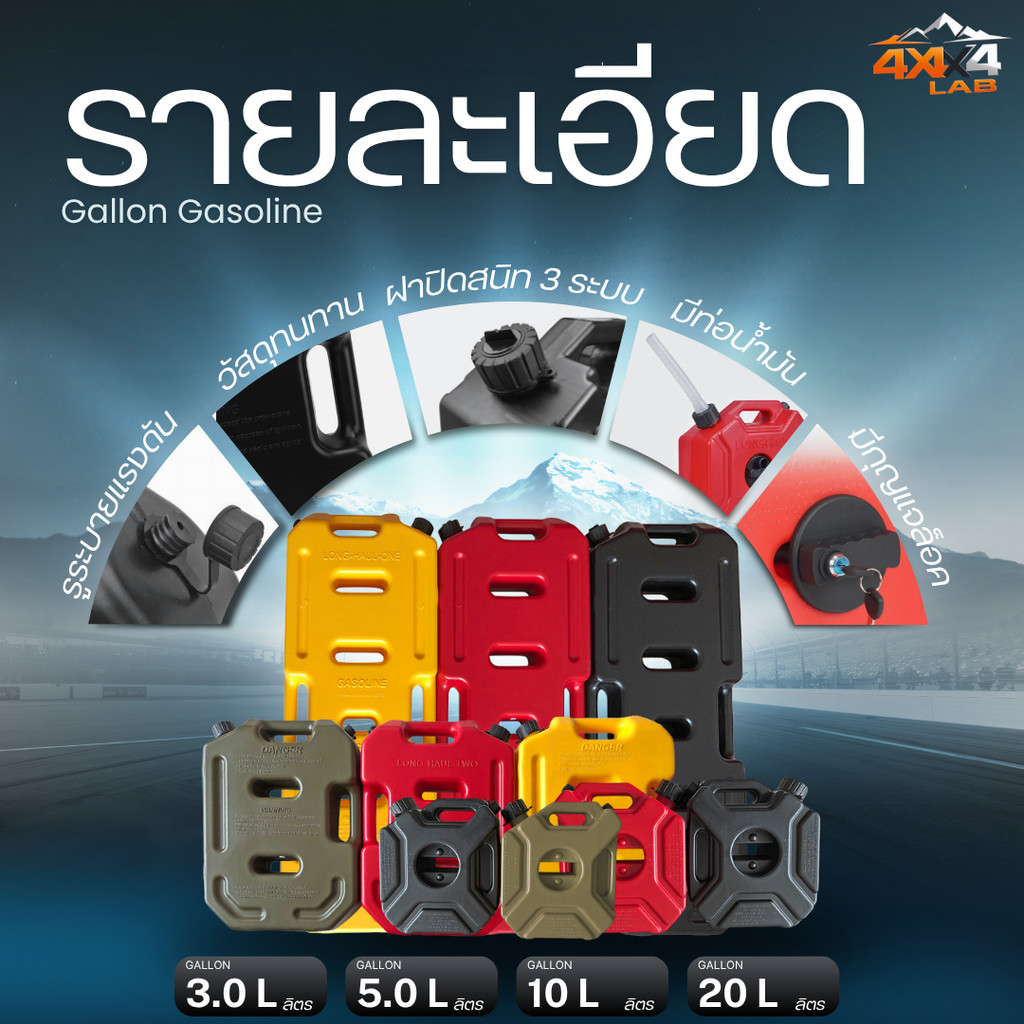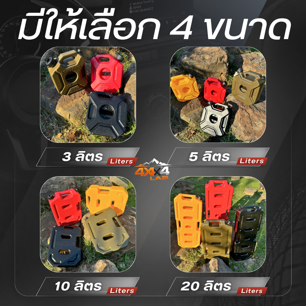 ถังน้ำมันสำรอง 3L,5L,10L,20L แกลลอนน้ำมัน หนาพิเศษ 4x4 ถังน้ำมัน วัสดุทนทาน พร้อมส่ง 4 ขนาด