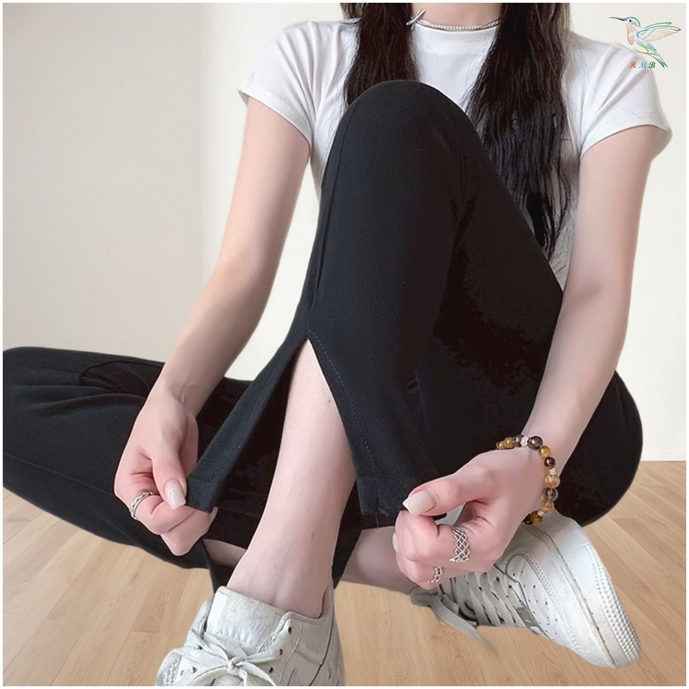 HMB® กางเกงขายาวเลกกิ้ง 9ส่วน กางเกงเลกกิ้งผู้หญิง ทรงขาม้า ดีเทลผ่าข้าง เนื้อผ้านิ่มยืดตามสัดส่วน py2591#
