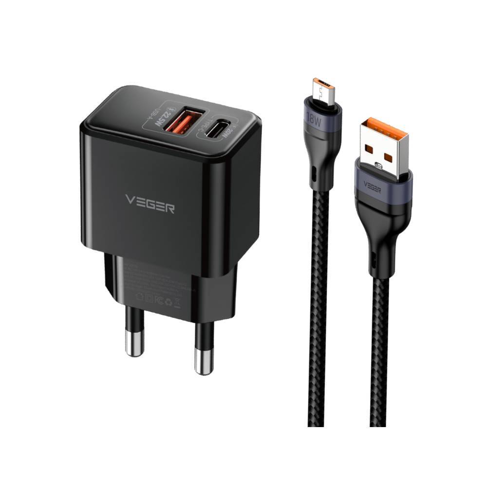อะแดปเตอร์ VEGER Wall Charger 1 USB-A / 1 USB-C 20W พร้อมสายชาร์จ USB-A to Micro USB 1 เมตร by Banana IT