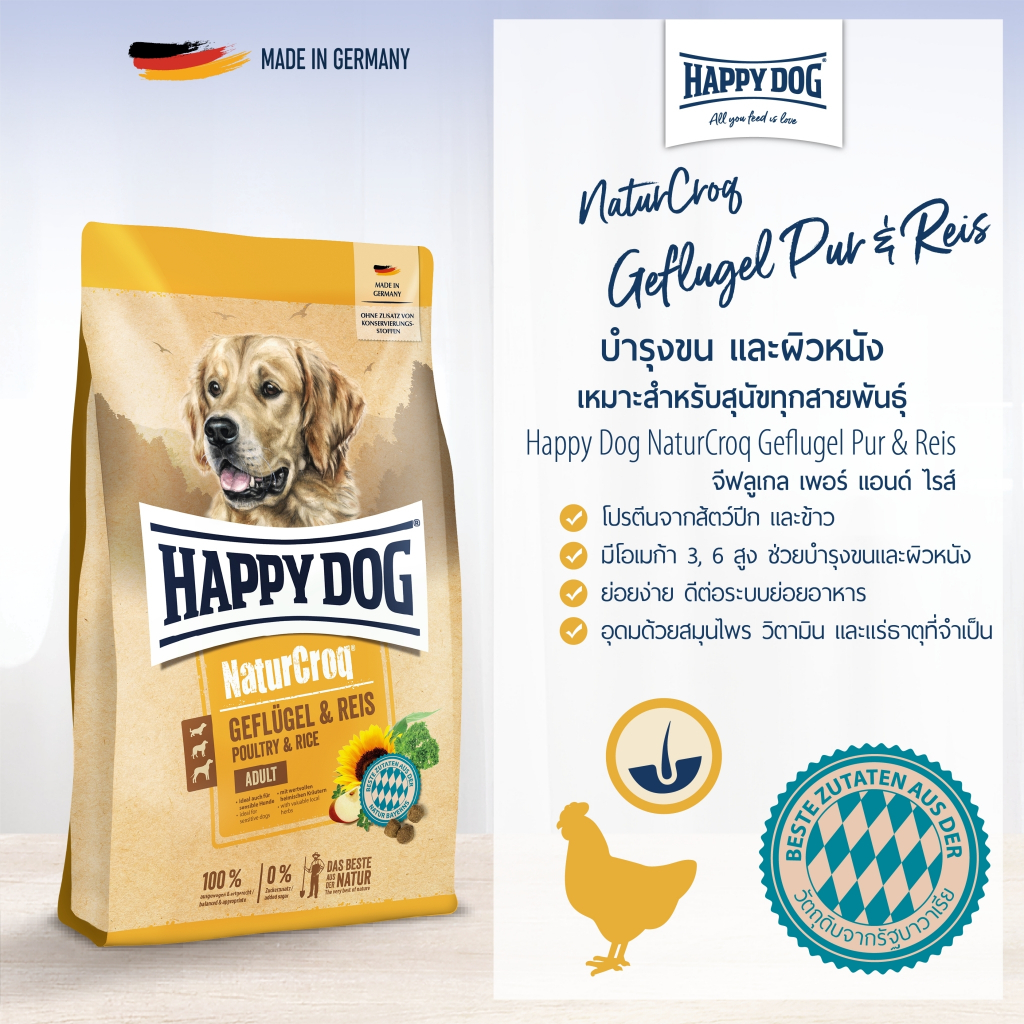 HAPPY DOG NaturCroq Geflugel Pur & Reis อาหารสุนัขโต สูตรเนื้อสัตว์ปีกและข้าวคุณภาพดี 11 Kg