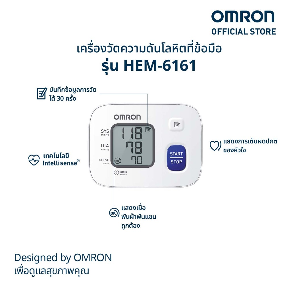 OMRON เครื่องวัดความดันโลหิตออมรอน แบบสายรัดข้อมือ รุ่น HEM-6161 (รับประกัน 3+2 ปี)