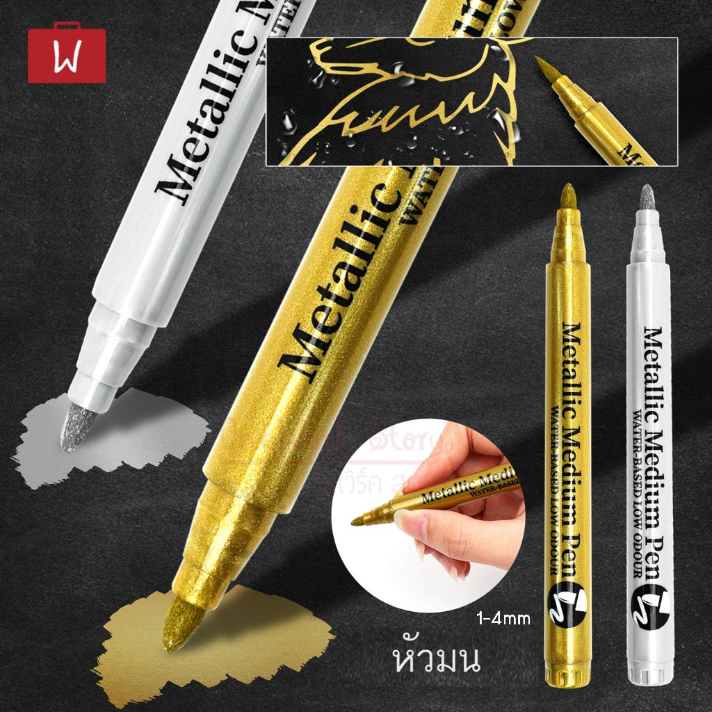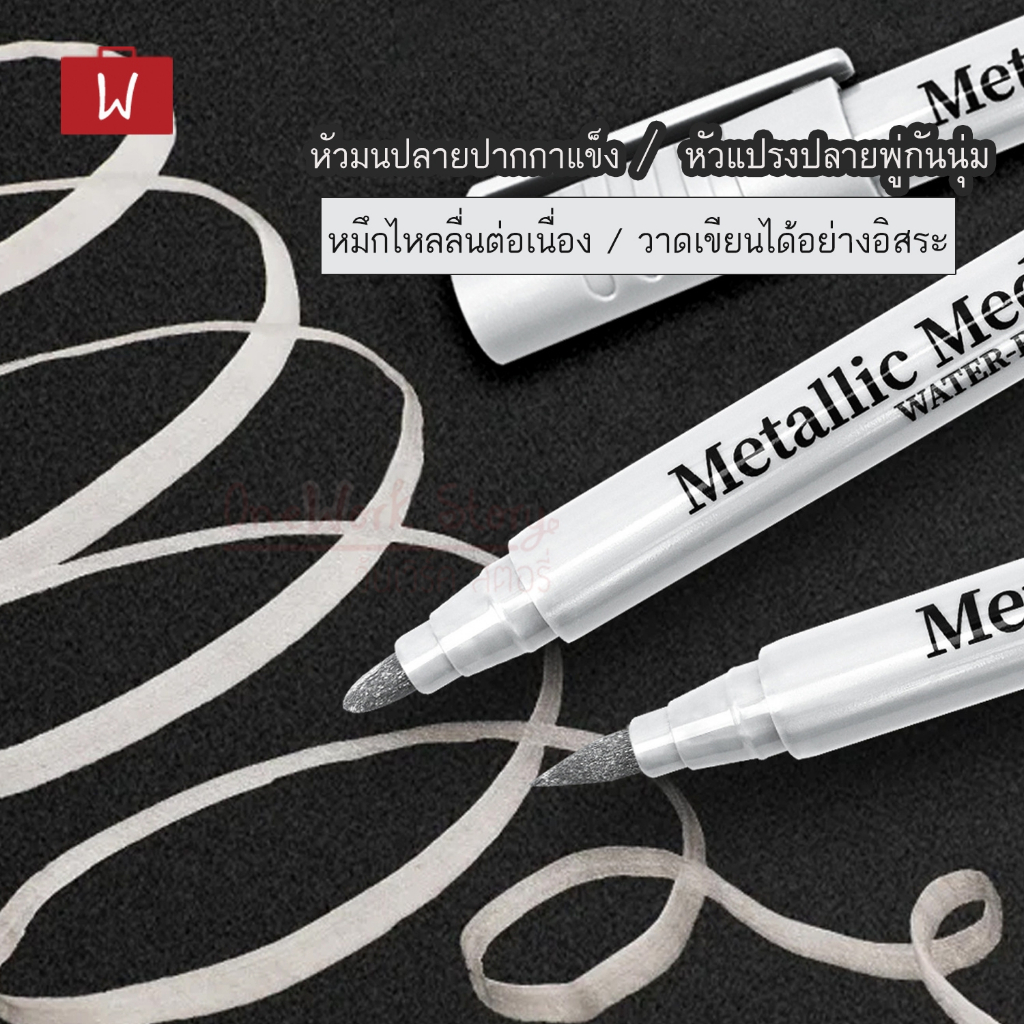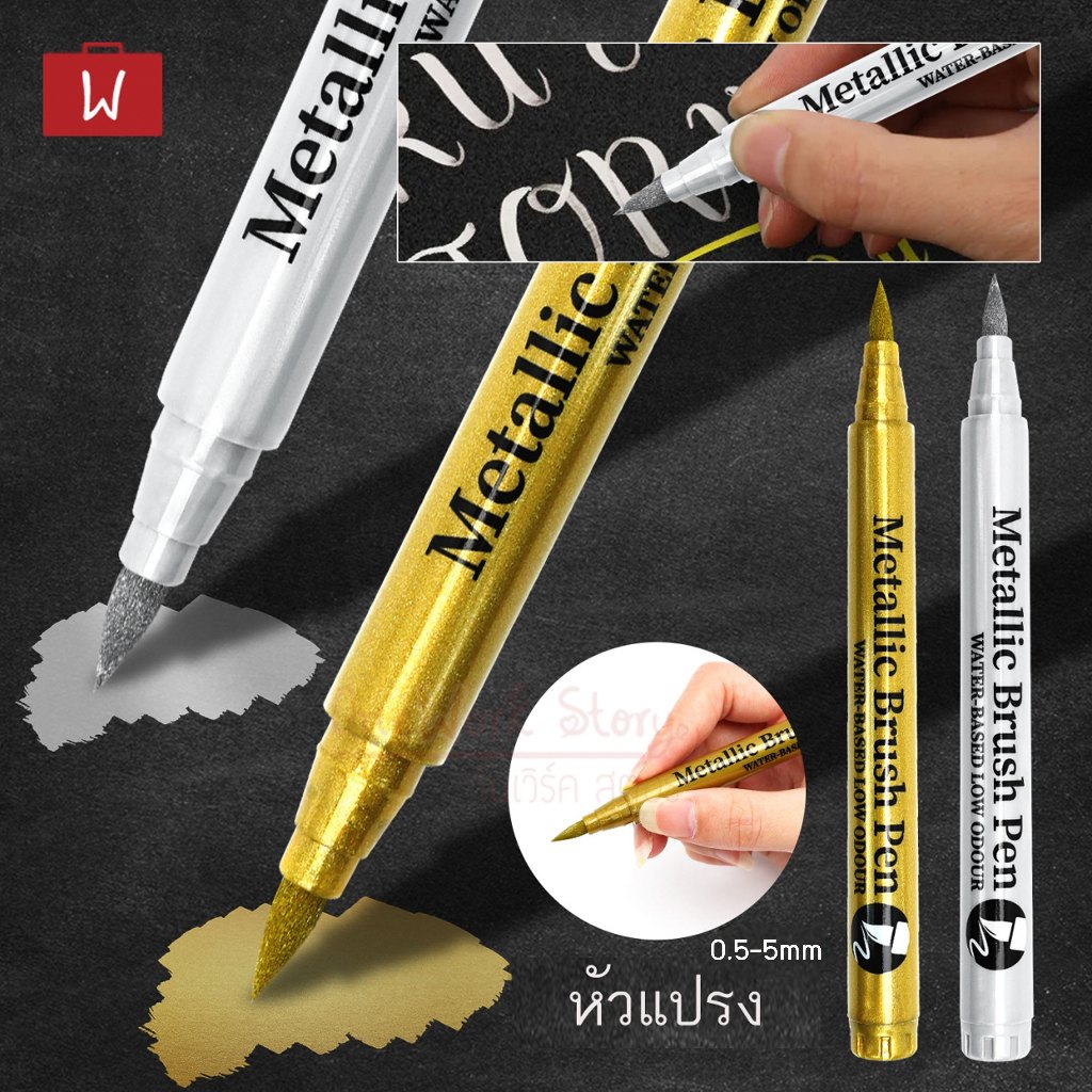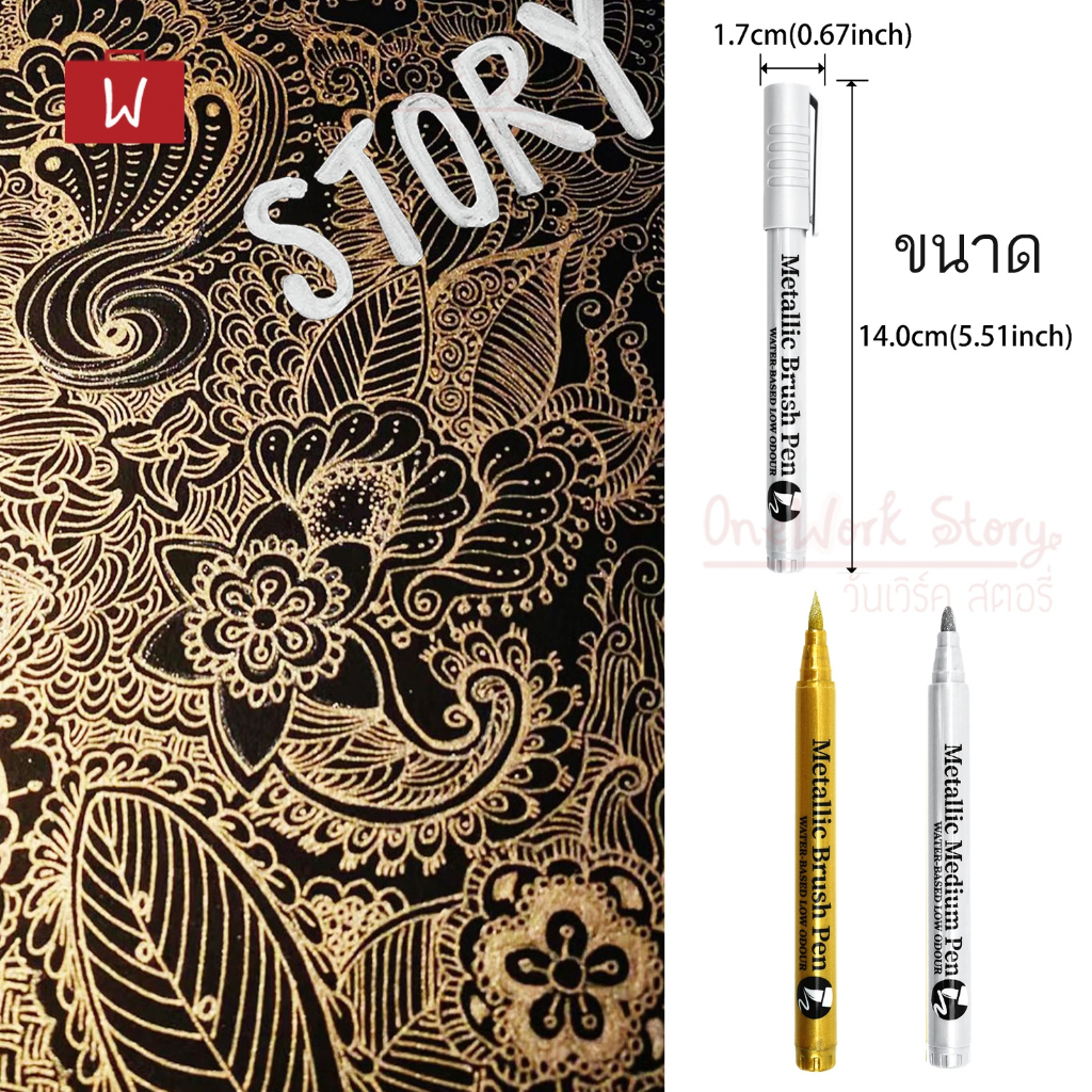Oneworkstory ปากกาเมทัลลิก |ลบได้ กันน้ำ เบสน้ำ หัวมน1-4mm/หัวแปรง0.5-5mm ปากกามาร์เกอร์ Metallic Pen Marker Pen