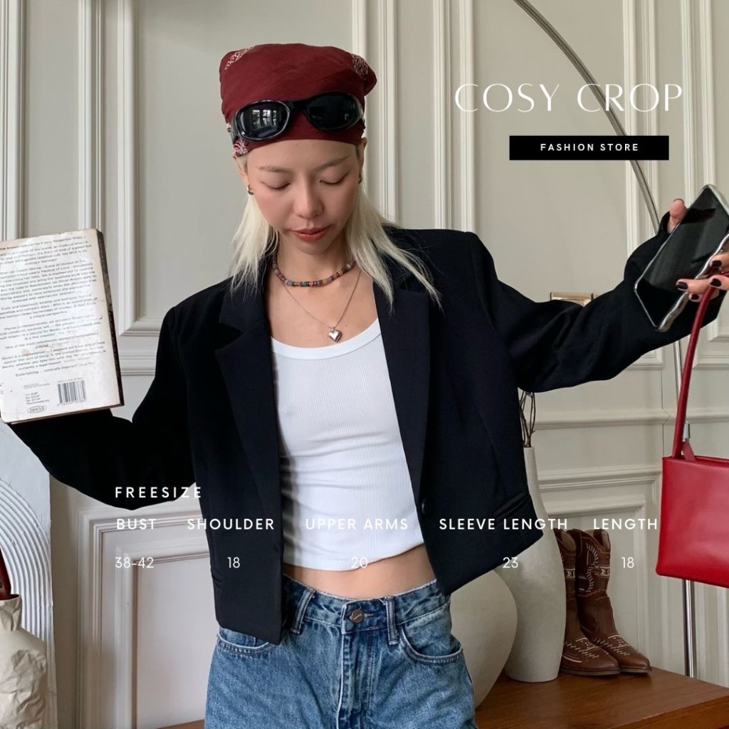! ส่งทันทีได้ภายใน 4 ชม. ส่งด่วนได้ภายในวัน ! Fashionstore-เสื้อสูท Blazer Crop vest