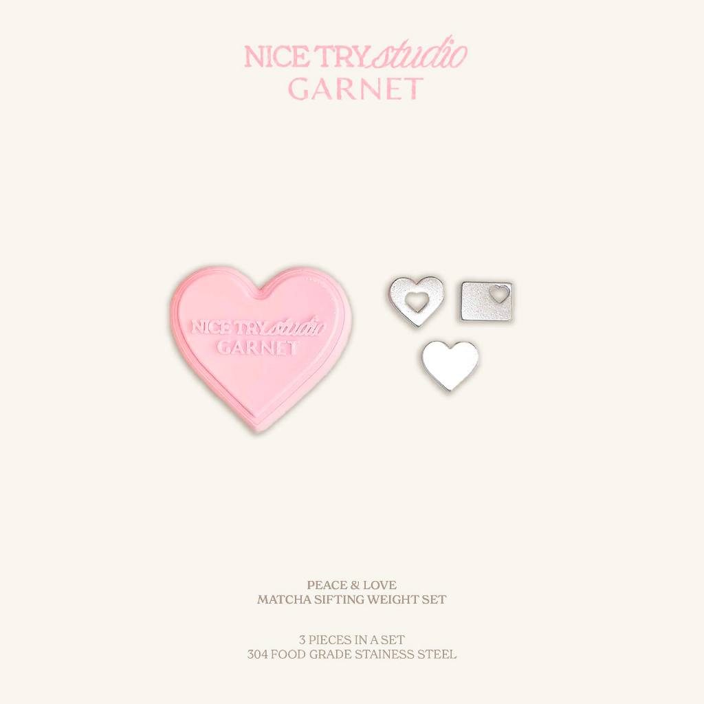 nice try studio x garnet — Peace & Love Matcha Sifting Weight Set ลูกร่อนมัทฉะลายหัวใจ เซต 3 ชิ้น พร้อมกล่องเก็บหัวใจ
