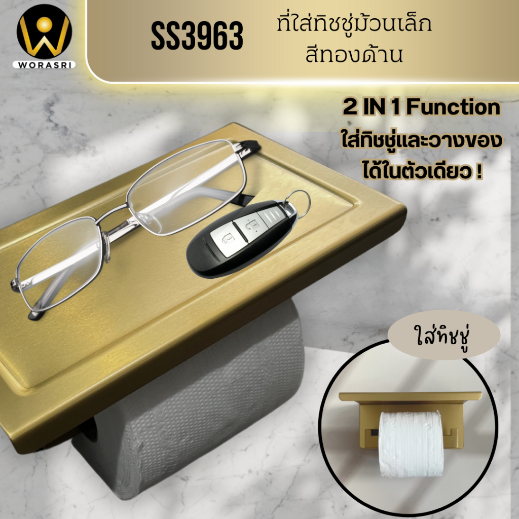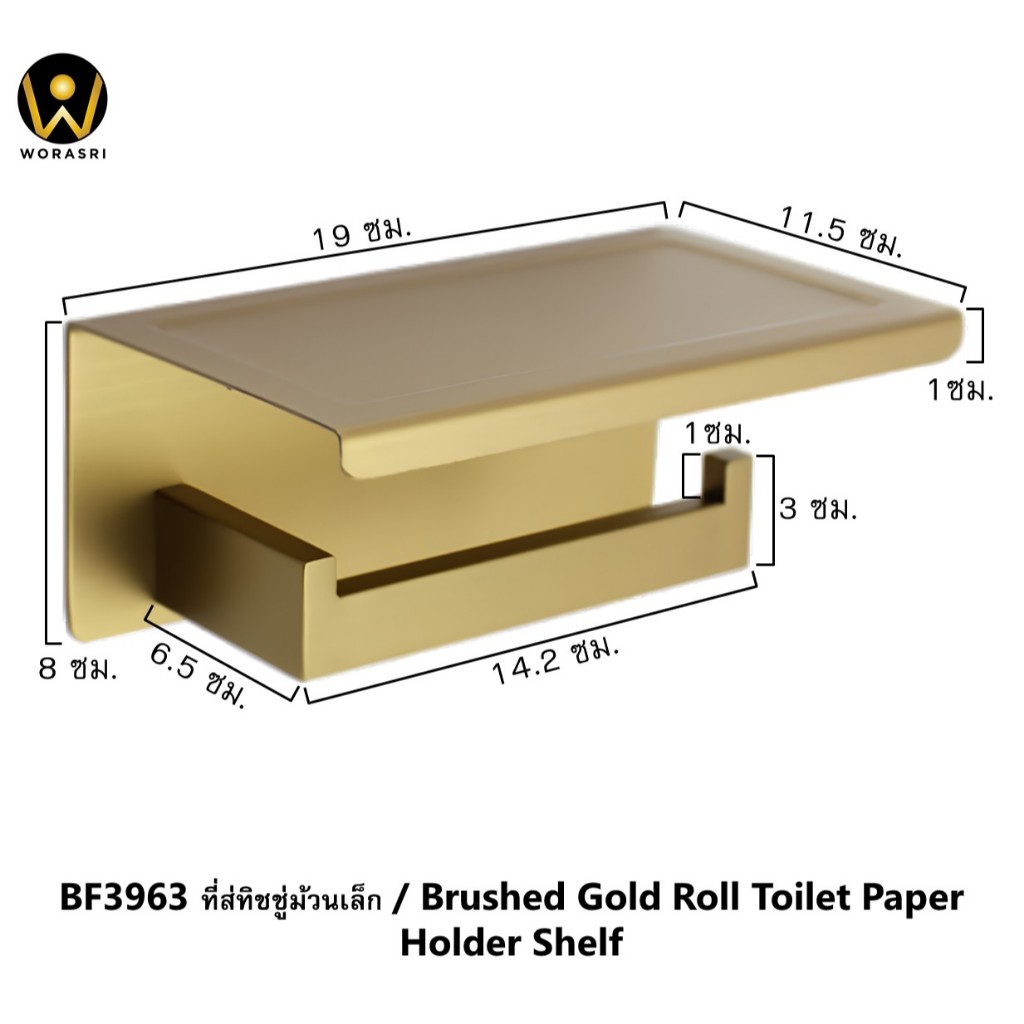 WoraSri BF3963 2IN1 ที่ใส่ทิชชู่ม้วนเล็กพร้อมชั้นวางมือถือในห้องน้ำ สีทองเฉดเข้ม ผิวด้าน สแตนเลส 201