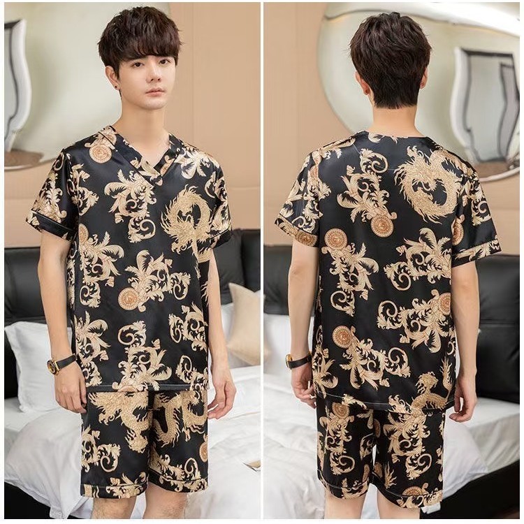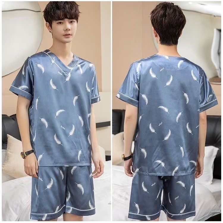 3300-1 SBT ชุดนอนผู้ชายคอวี ชุดนอนผู้ชายแขนสั้นขาสั้นแต่งลวดลายน่ารักๆ เนื้อผ้าบาง ใส่สบาย พร้อมส่งทุกชิ้น