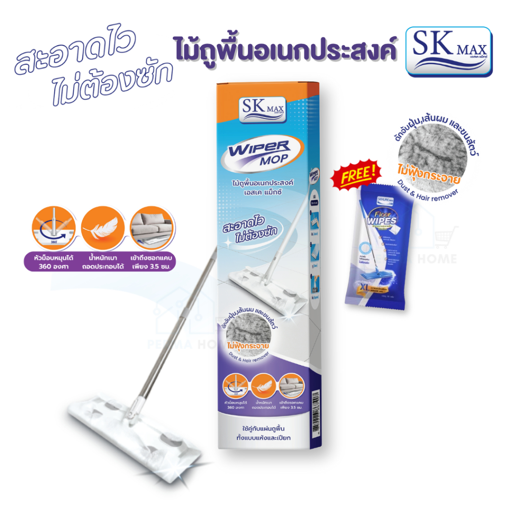 [แถมฟรีผ้าเปียกถูพื้น 1 ห่อ] SK Max ไม้ถูพื้น ไม้ม็อบ ไม้ม็อบดันฝุ่น ไม้ถูพื้นอเนกประสงค์ เอส เค แม็กซ์ (จำนวน 1 กล่อง)
