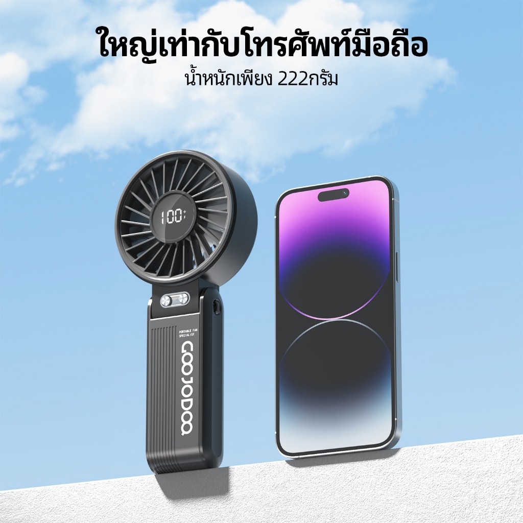 GOOJODOQ Gfs003 พัดลมพกพา 4000mah พัดลม Type C พร้อมจอแสดงผล พัดลมไอเย็น พับได้ พัดลมมือถือ