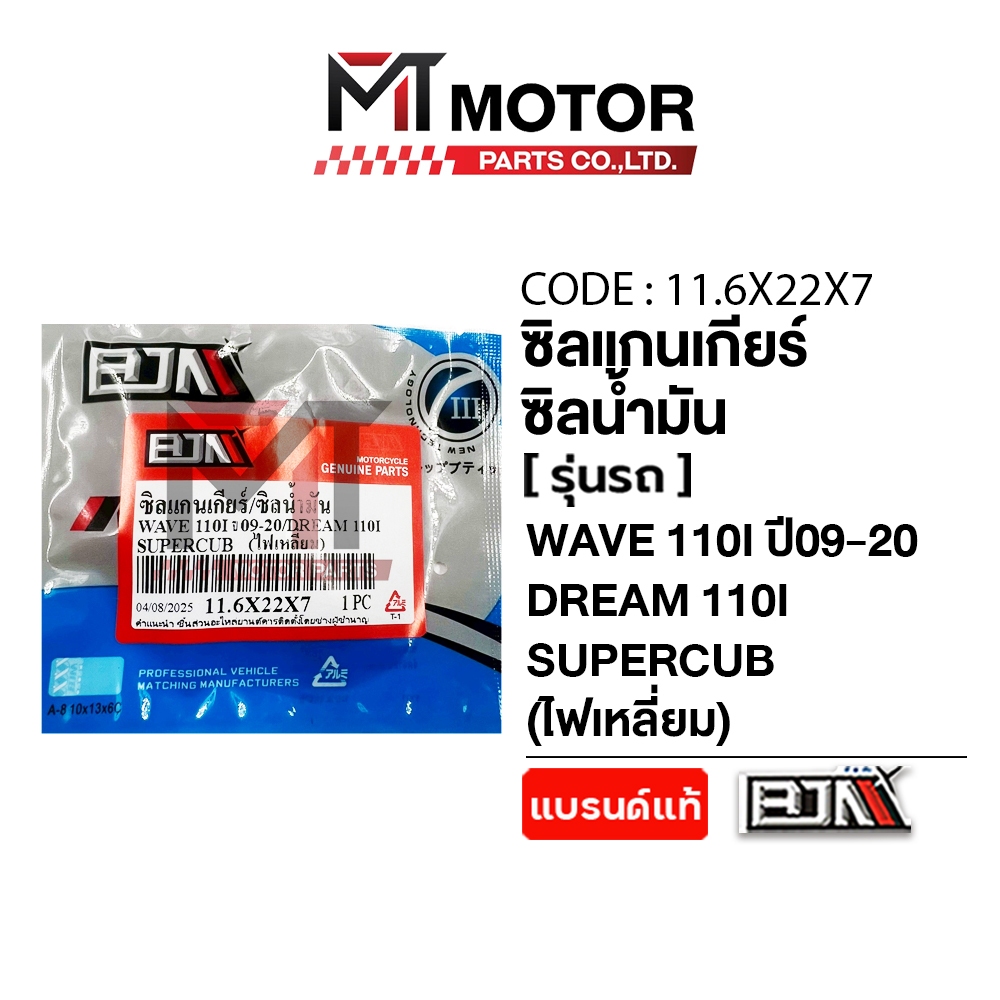(11.6x22x7) ซีลแกนเกียร์ HONDA WAVE 110-I ปี09-2020, DREAM 110-I, SUPERCUB, MSX Grom [MT] ซีลแกนเกียร์DREAM ซิลน้ำมันเวฟ