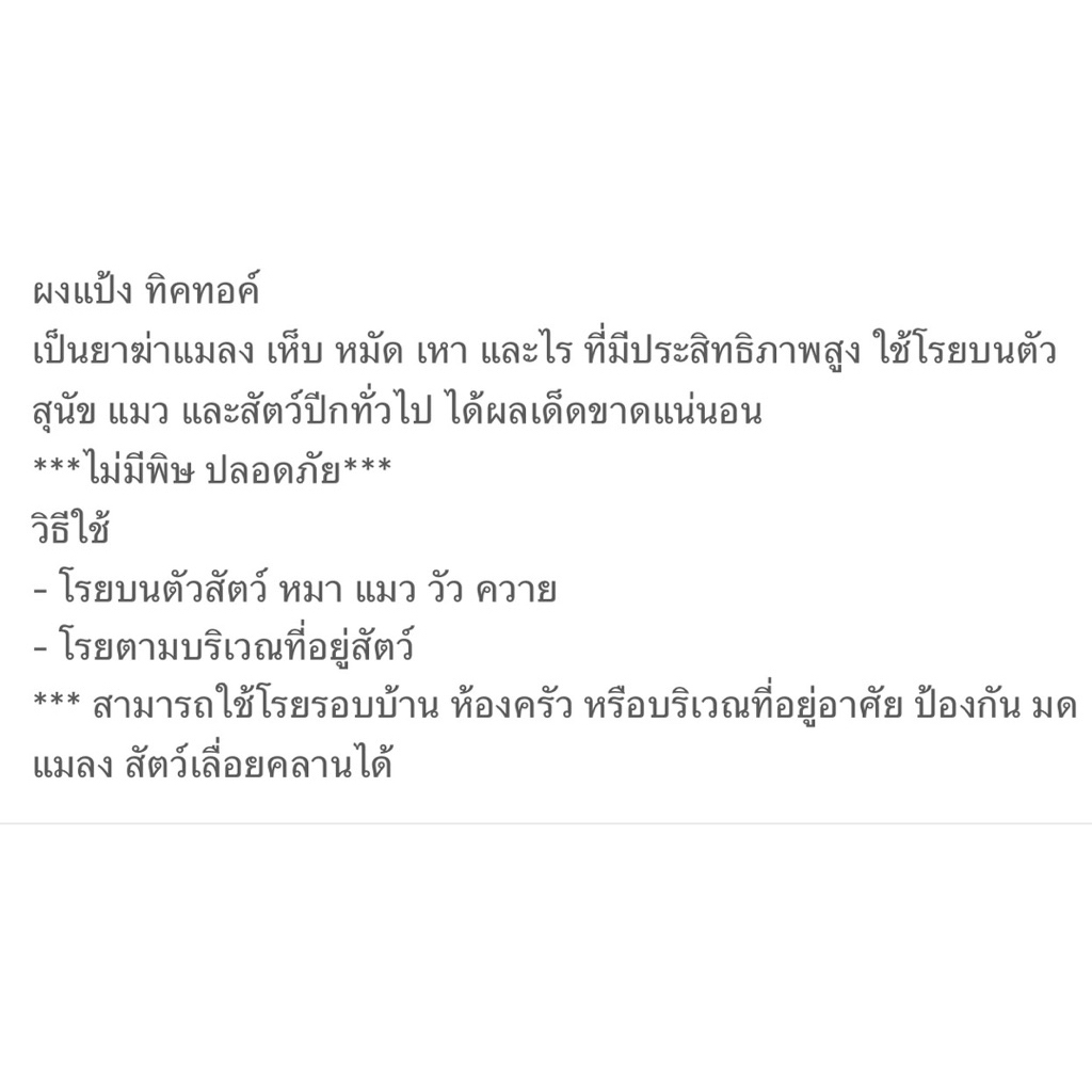 แป้งทิคท๊อค Tix stop หยุดปัญหาเห็บ หมัดได้ กำจัดเห็บหมัด มด แมลง บนตัวสุนัข แมว สัตว์เลี้ยงทุกชนิด พื้นบ้าน ขนาด 180กรัม