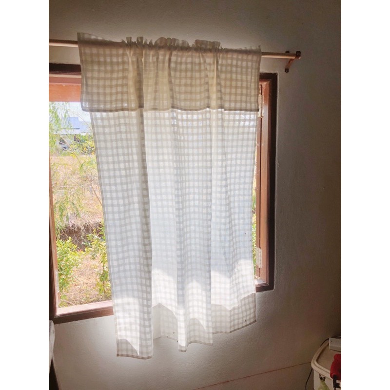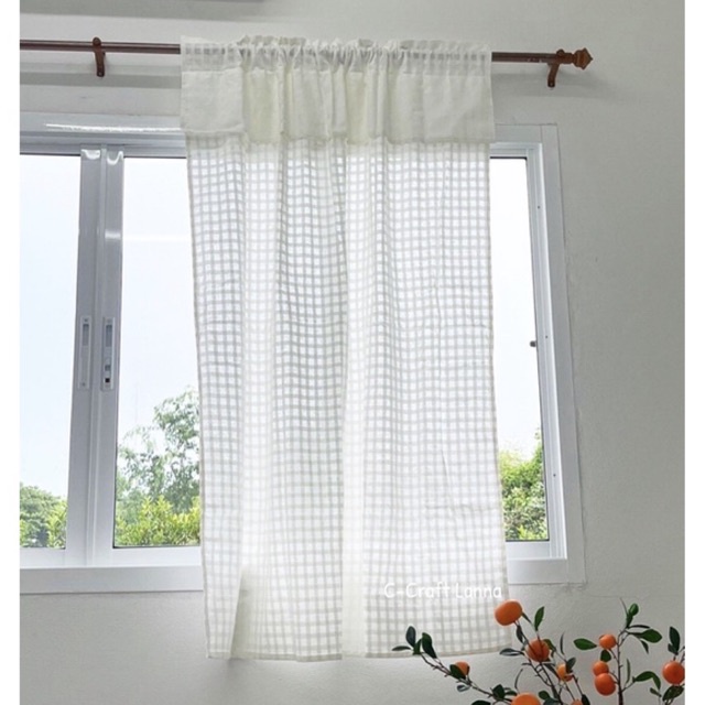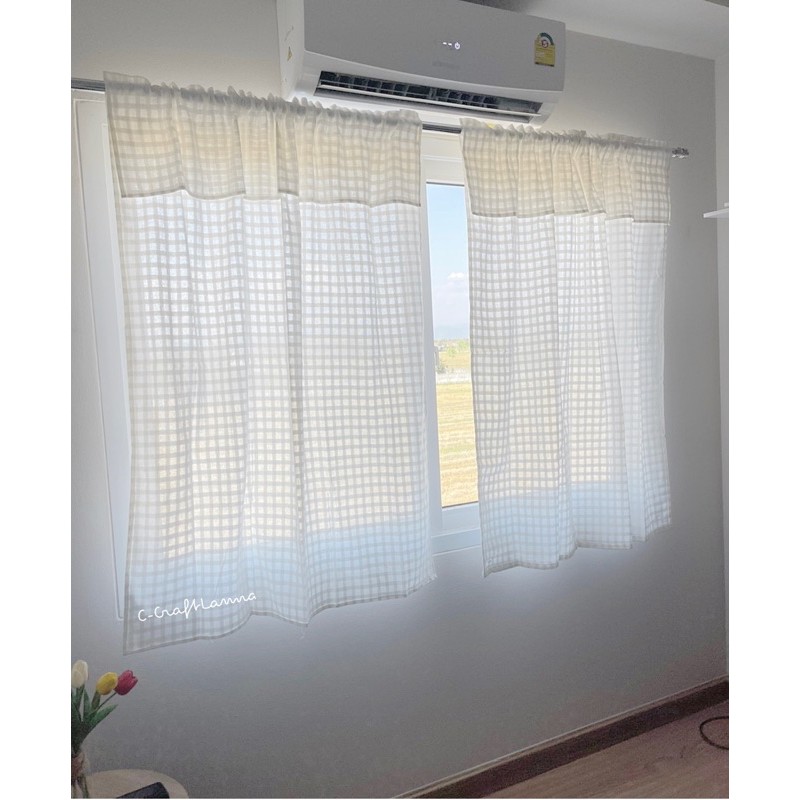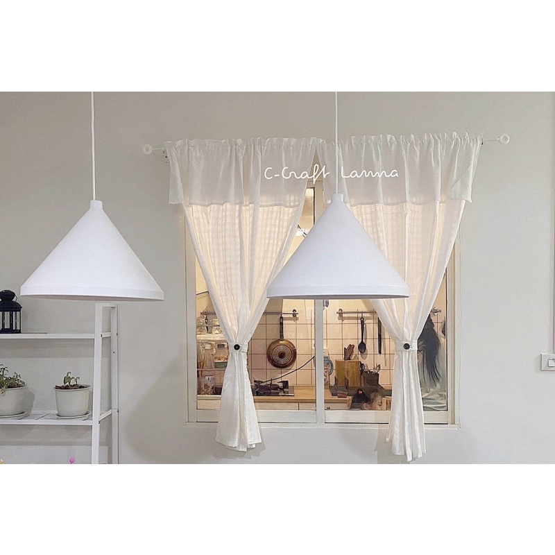 ผ้าม่านหน้าต่าง แบบมีระบาย ขนาดกว้าง110 สูง130 ซม ผ้าม่านผ้าฝ้ายลายดั้งเดิม สีขาว TT130