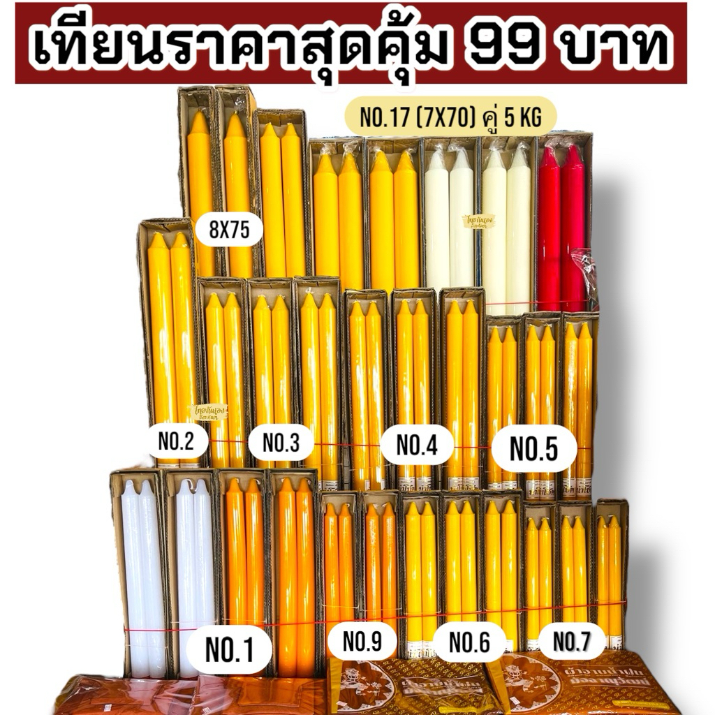 เทียนพรรษา ราคาถูกมาก( คู่ละ 99 บาท ) สุดคุ้ม ตรานำโชค ถวายเทียนเข้าพรรษา