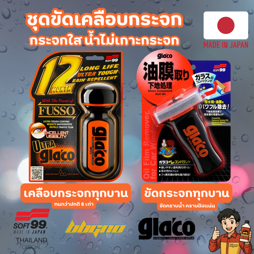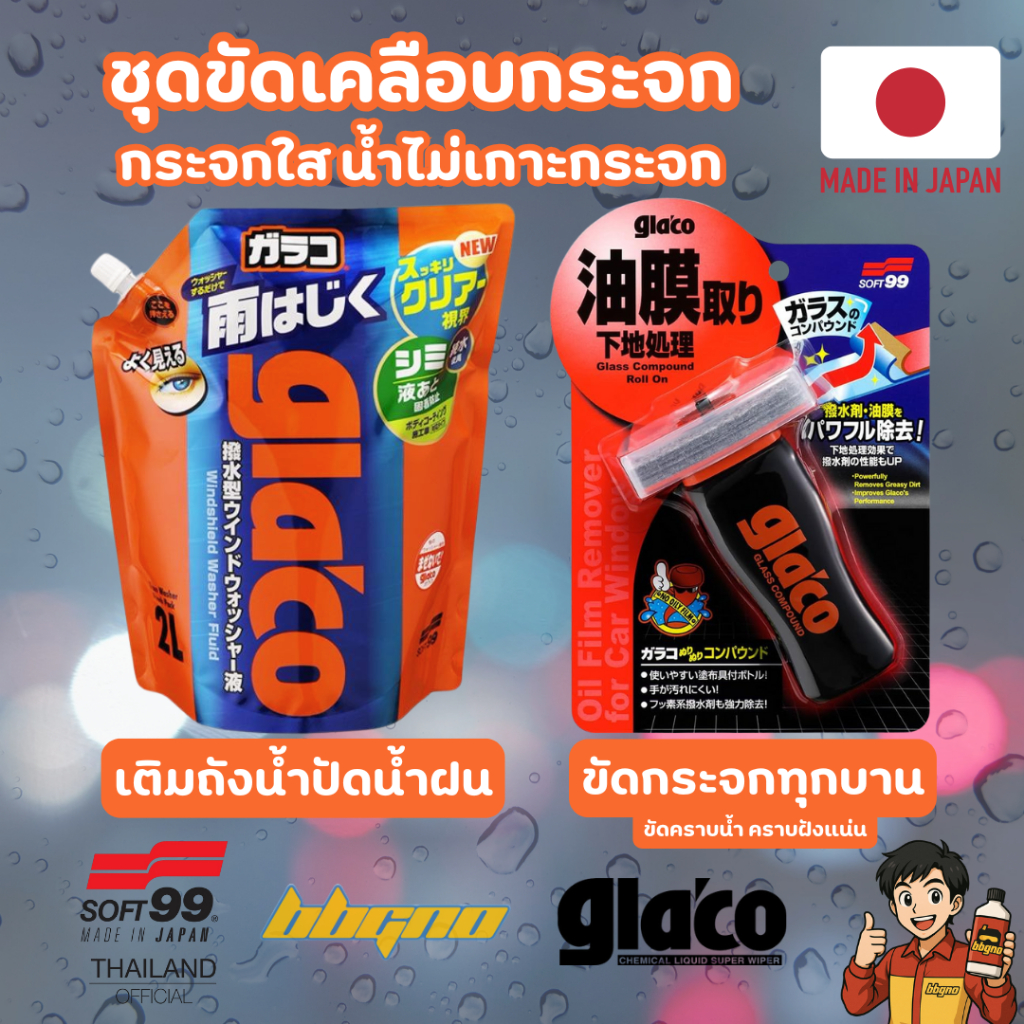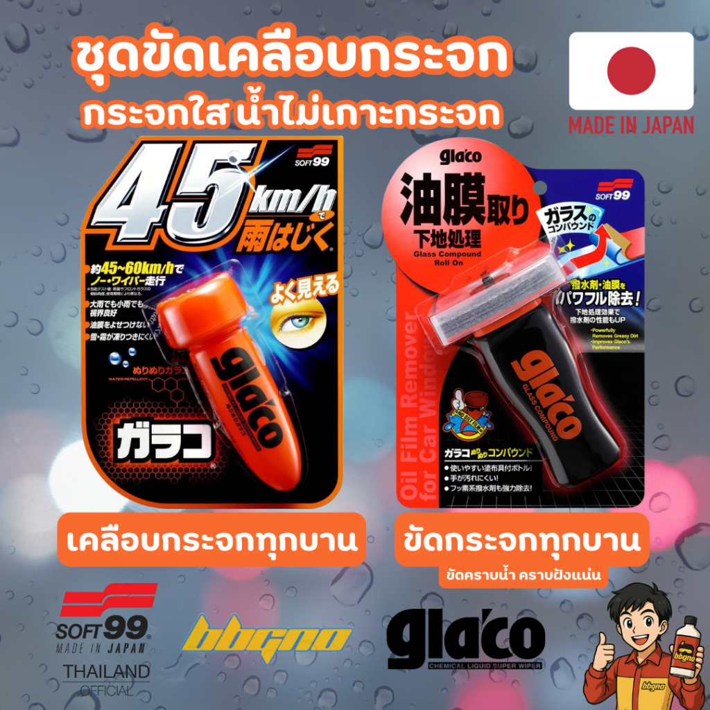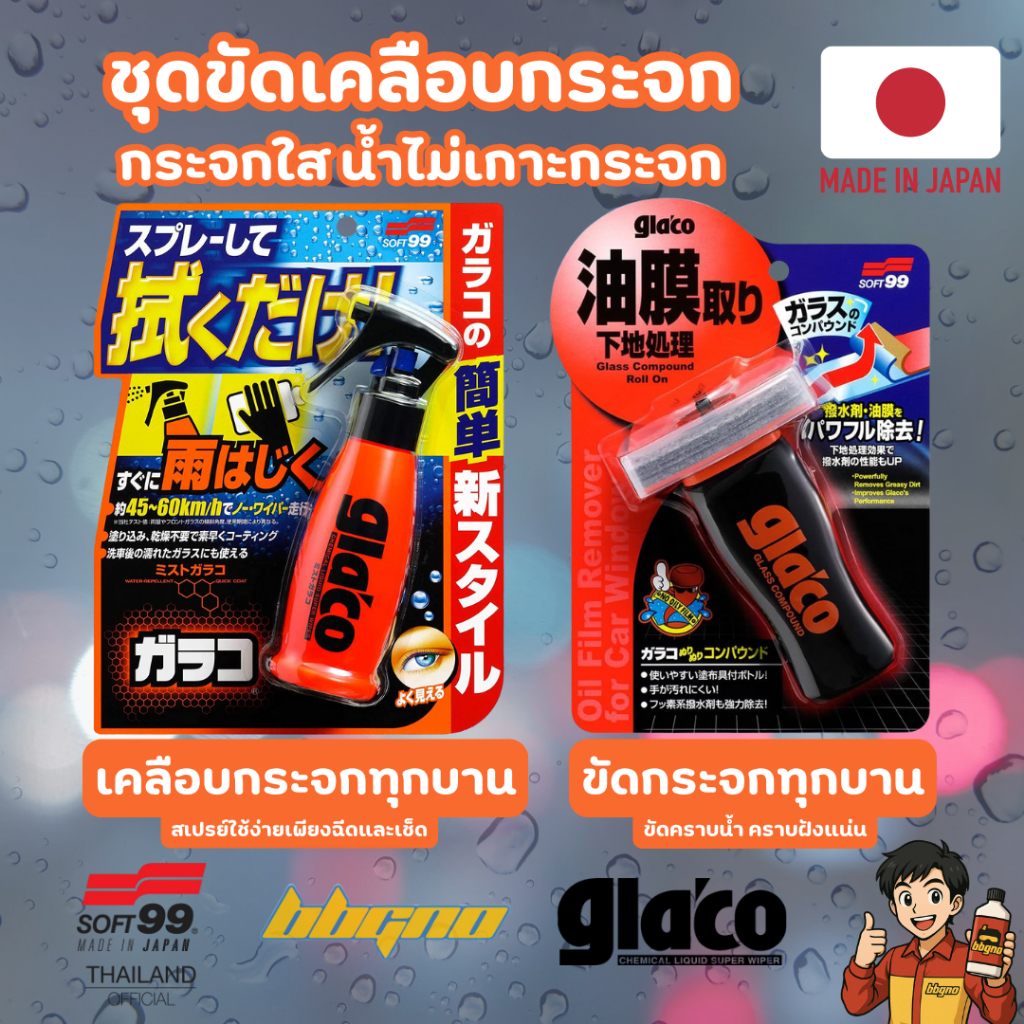 ชุดขัดเคลือบกระจก Glaco น้ำยาเคลือบกระจก SOFT99 Gla'co ผ้าไมโครไฟเบอร์ ของแท้ กลาโค่