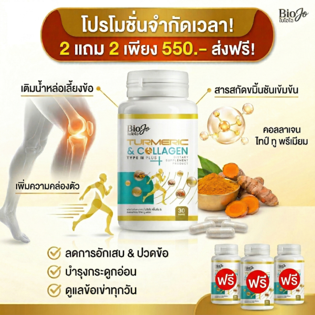 [ 2 แถม 2 ] Biojo collagen Bon active ผลิตภัณฑ์เสริมอาหาร คอลลาเจนบำรุงกระดูก และข้อต่อ
