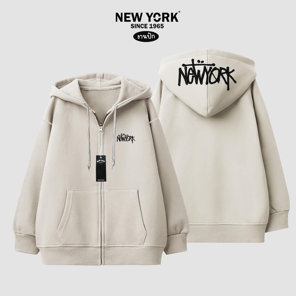 NEWYORK 1965 STREET - งานปักหมวก เสื้อคลุมแขนยาวมีฮู้ด ซิปทอง คุณภาพผ้าคอตตอนวอร์ม ใส่สบาย