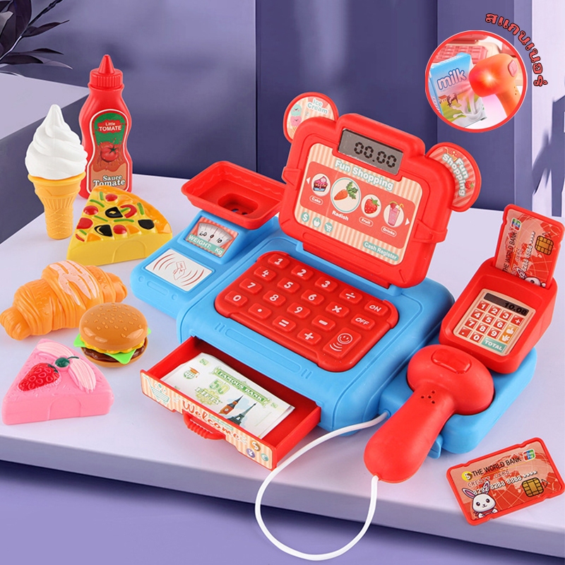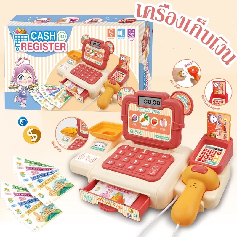 พร้อมส่ง แคชเชียร์เด็ก แถมตุ๊กตาKulomi มีไฟมีเสียง พร้อมเครื่องคิดเลข มีให้เลือกหลายสี