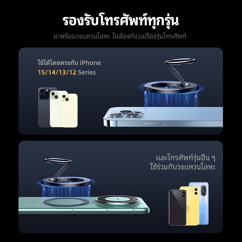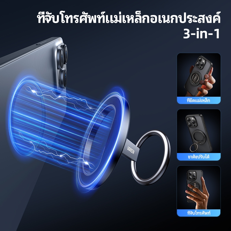 UGREEN ที่วางแหวนโทรศัพท์แบบแม่เหล็กโลหะผสมสังกะสีขาตั้งแบบปรับได้ที่จับโทรศัพท์สําหรับ iphone Xiaomi Samsung Huawei
