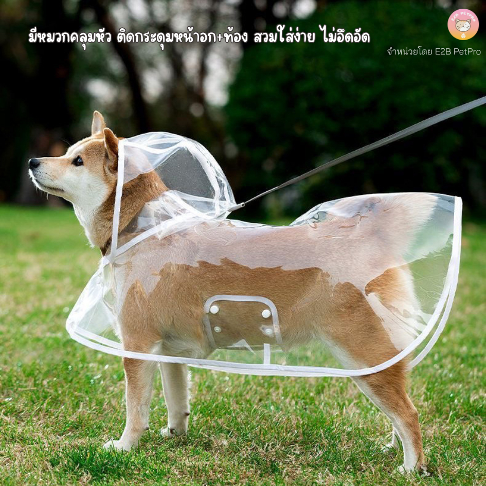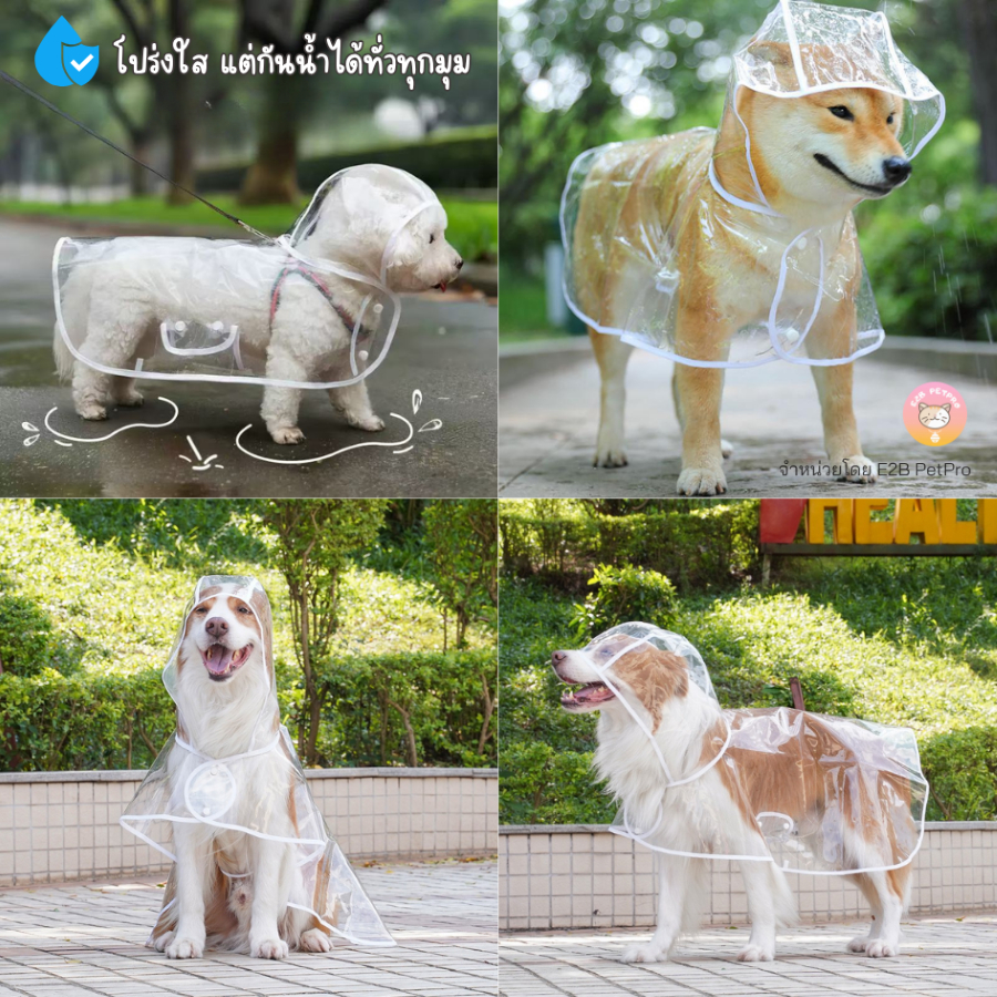 เสื้อกันฝนสุนัข เสื้อกันฝนสัตว์เลี้ยง สีโปร่งใสขอบขาว กันฝนสุนัขคลุมได้ทั้งตัว H007