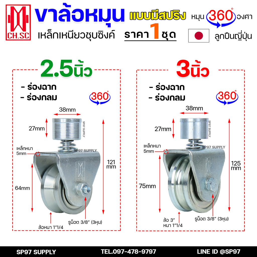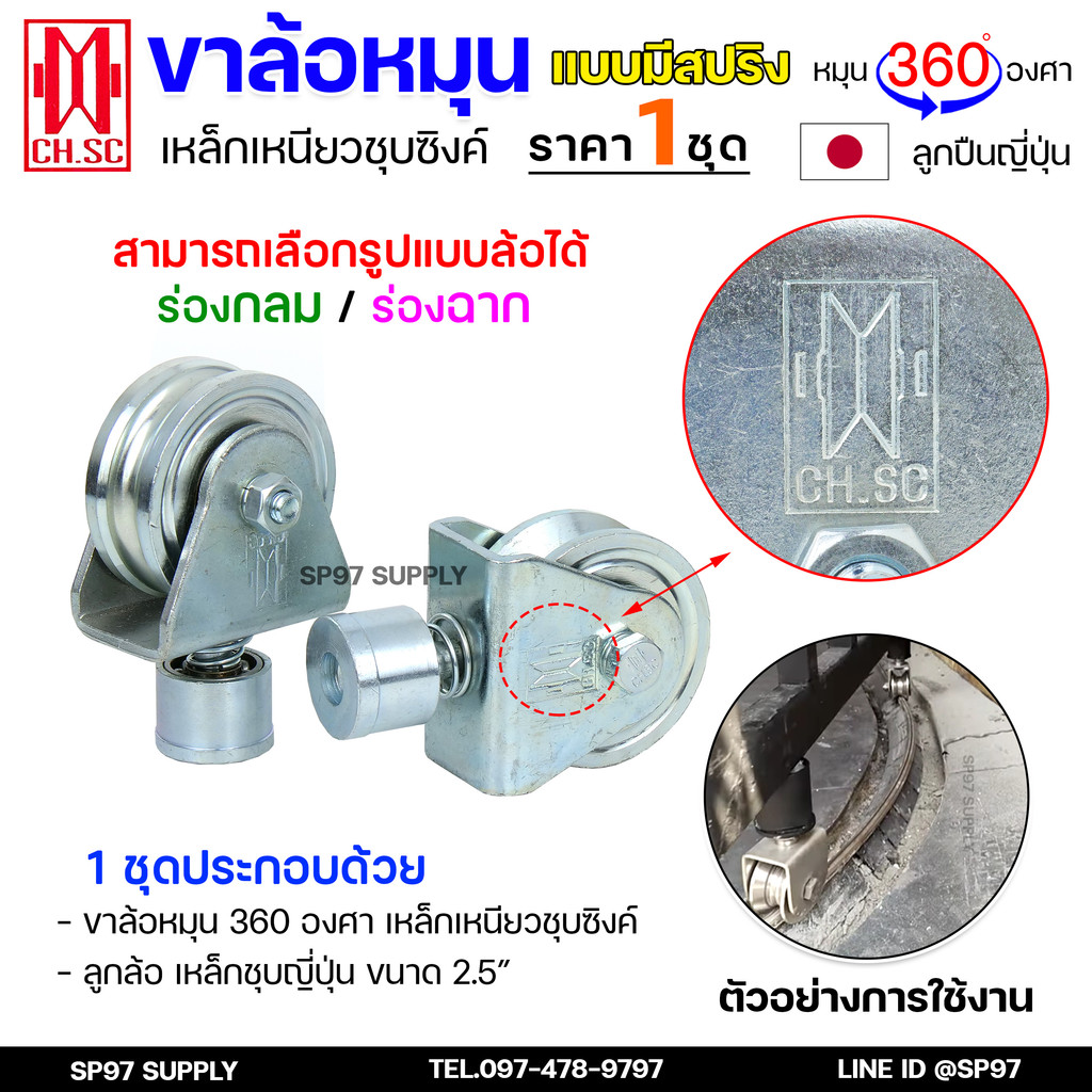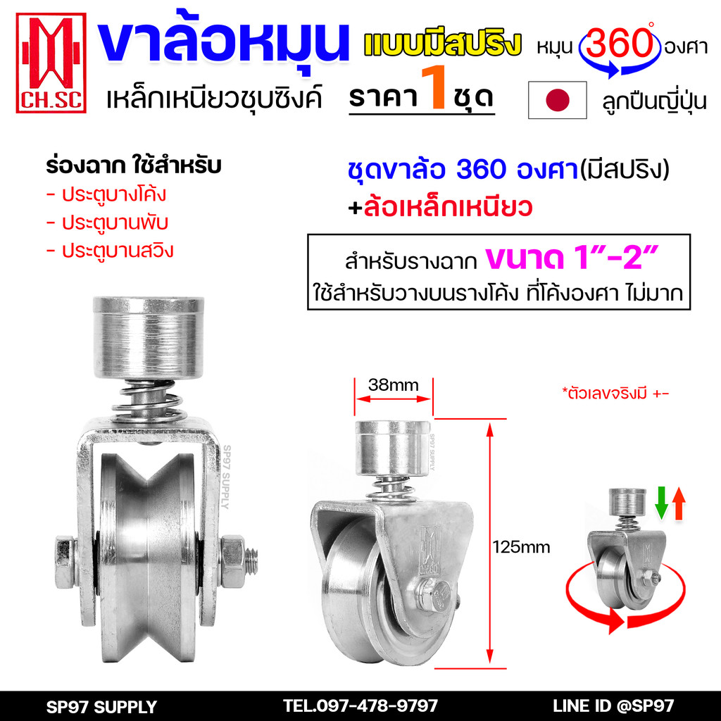CH.SC ล้อสปริงเหล็ก ขาล้อหมุน 360 องศา สำหรับ ประตูรั้ว ประตูบ้าน ประตูโค้ง ประตูพับ ร่องกลม / ร่องฉาก (ราคา 1ลูก)