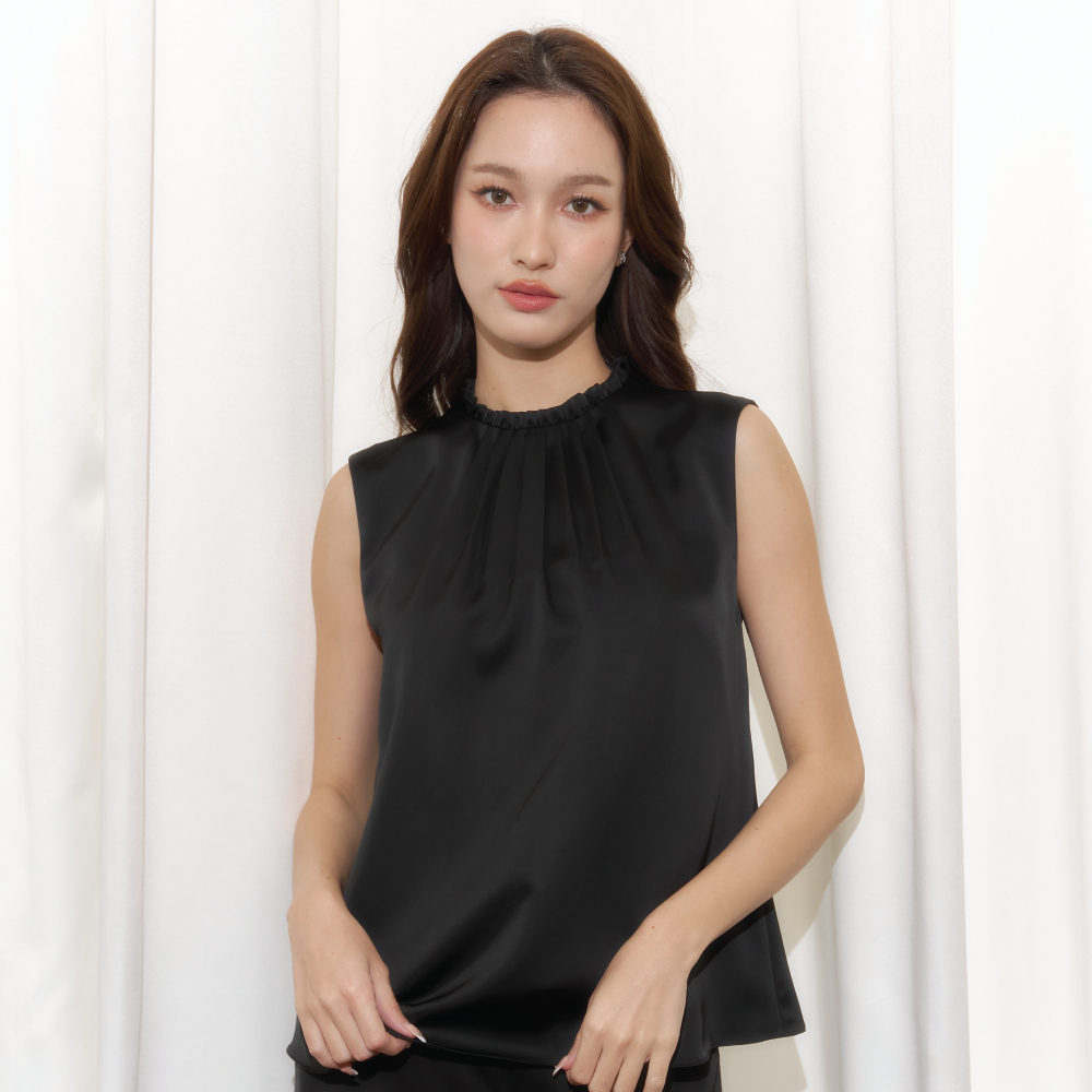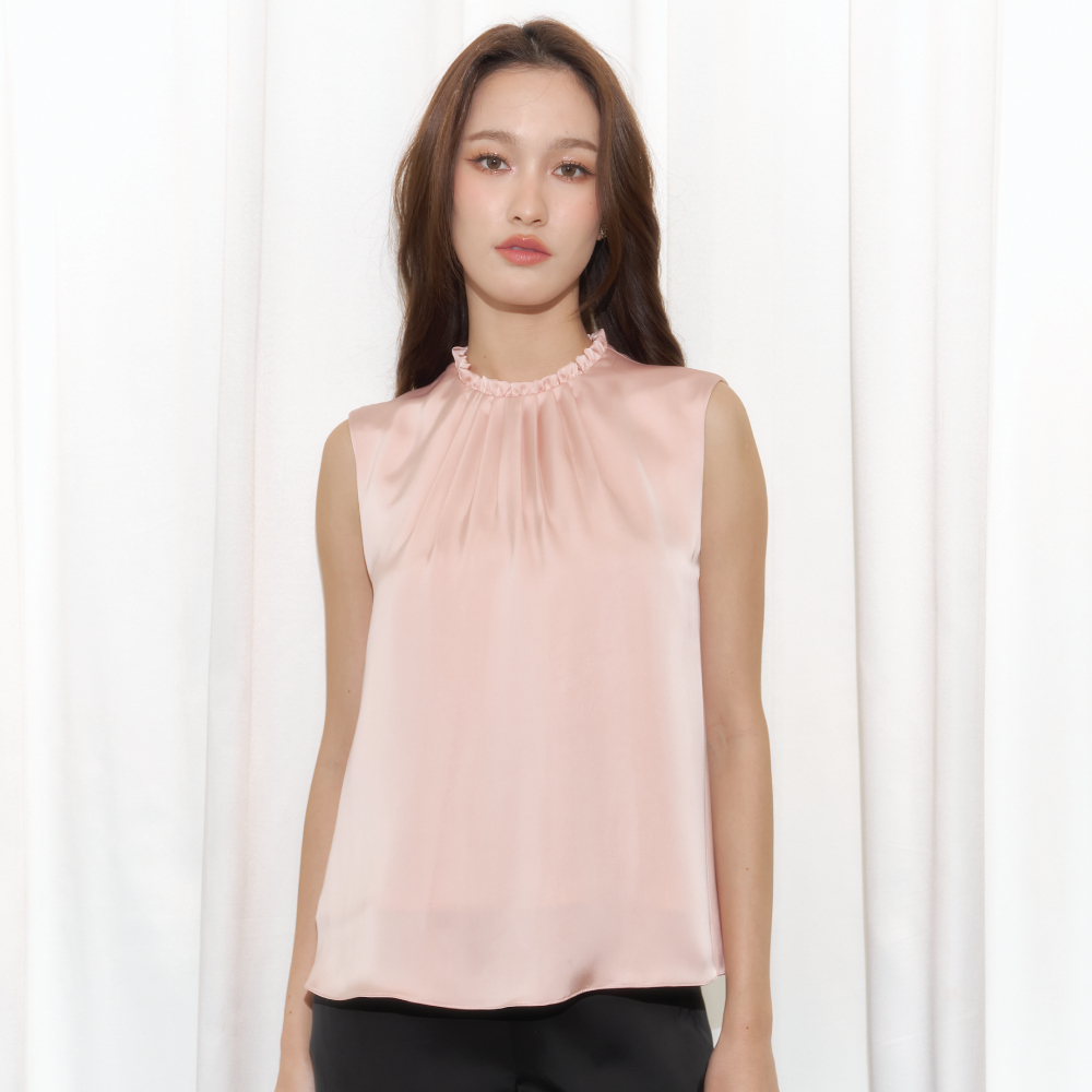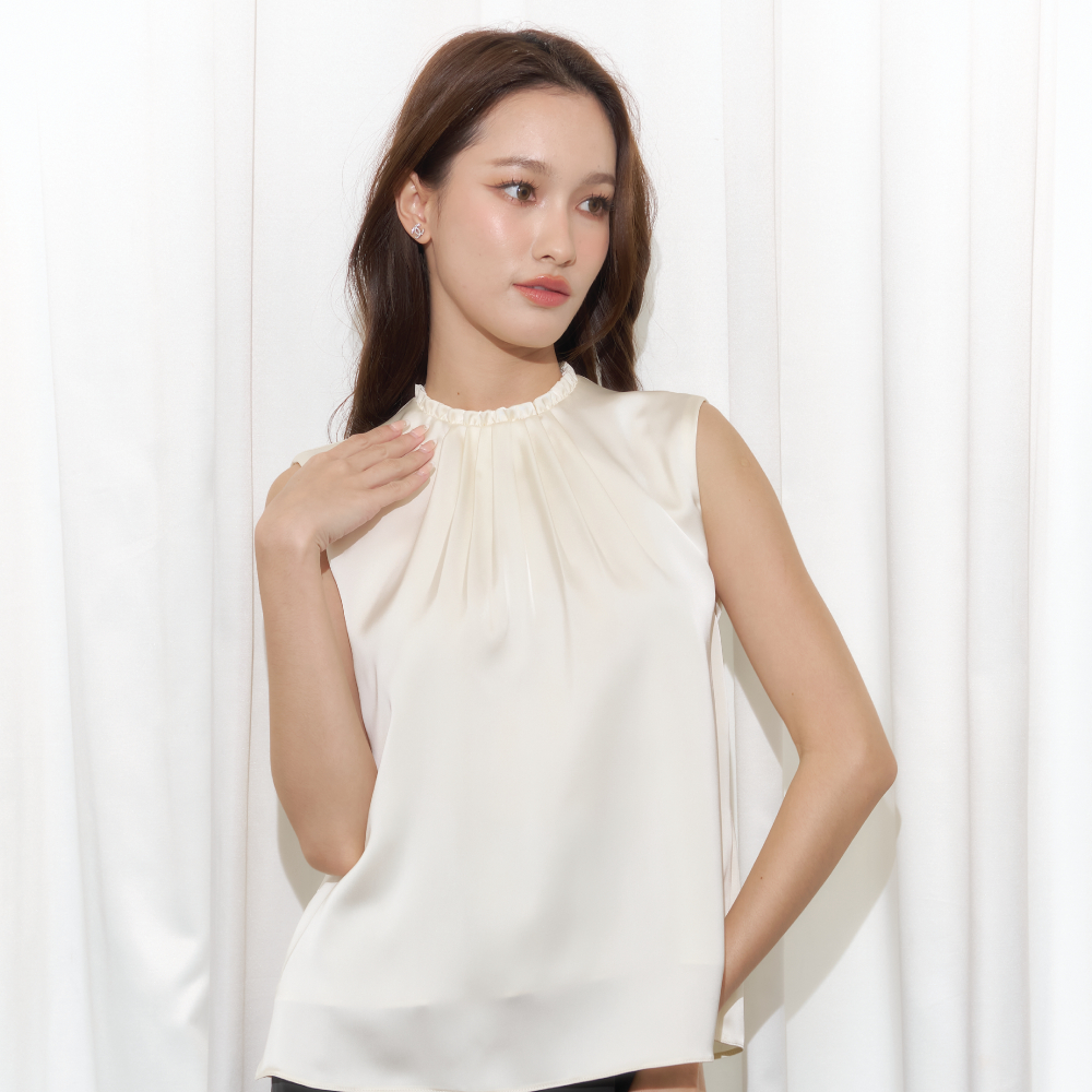 Friday attire เสื้อแขนกุดแต่งรูดระบายคอ Poppy Top (FT-086)