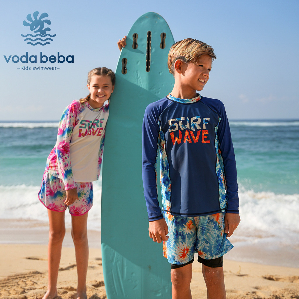 ชุดว่ายน้ำเด็กผู้ชายรุ่นใหม่2025ชุดว่ายน้ำเด็กแยกชิ้นแขนยาวแห้งเร็วชุดว่ายน้ำเด็กกลางและใหญ่กันแดด