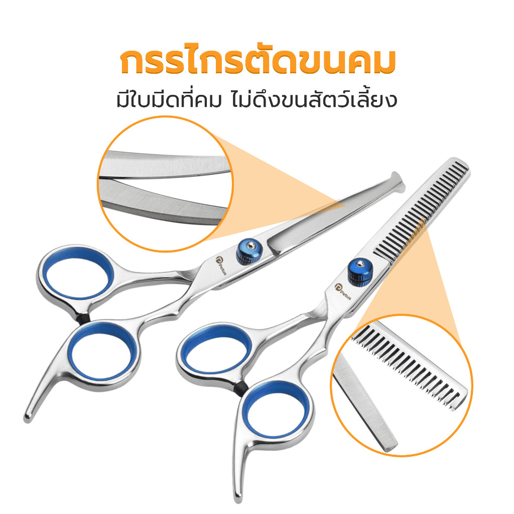 Petus ชุดกรรไกรตัดขน ตัดขนสัตว์เลี้ยง Pet Grooming Scissor ครบทุกฟังก์ชั่นการใช้งาน พร้อมกระเป๋า ฟรีผ้าเช็ดอุปกรณ์ในเซ็ต