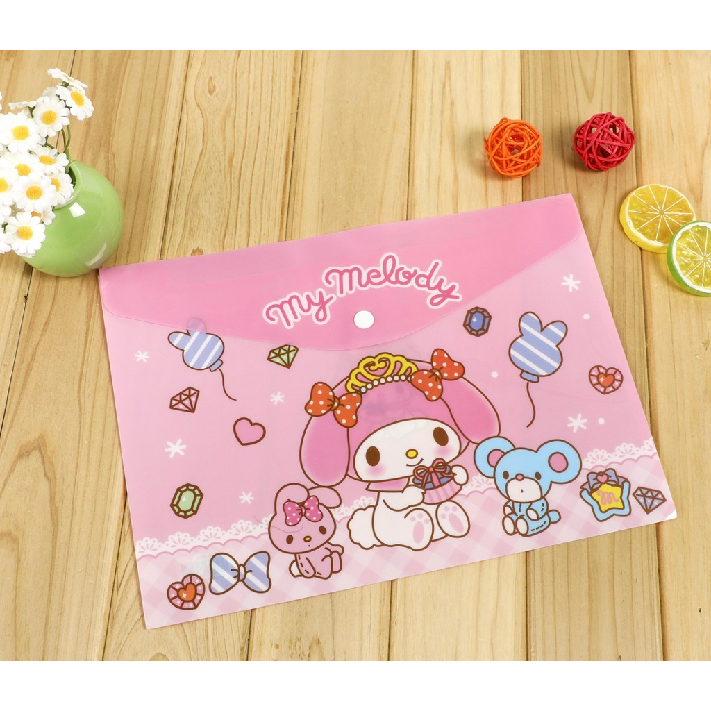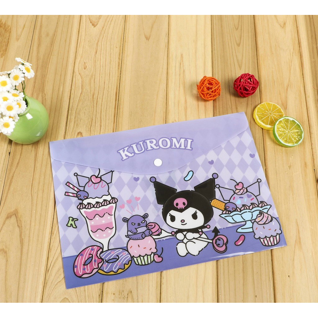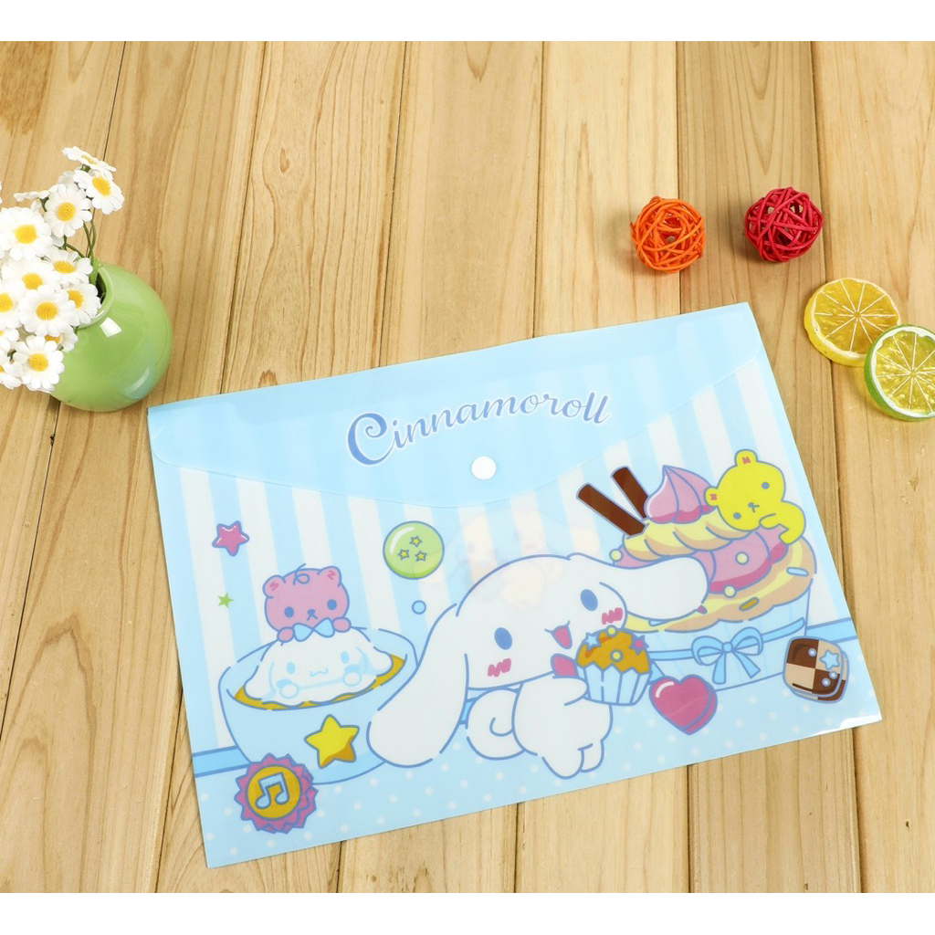 แฟ้มเอกสารมีกระดูม A4 ลายการตูนซาริโอ้ น่ารัก อุปกรณ์สำนักงาน