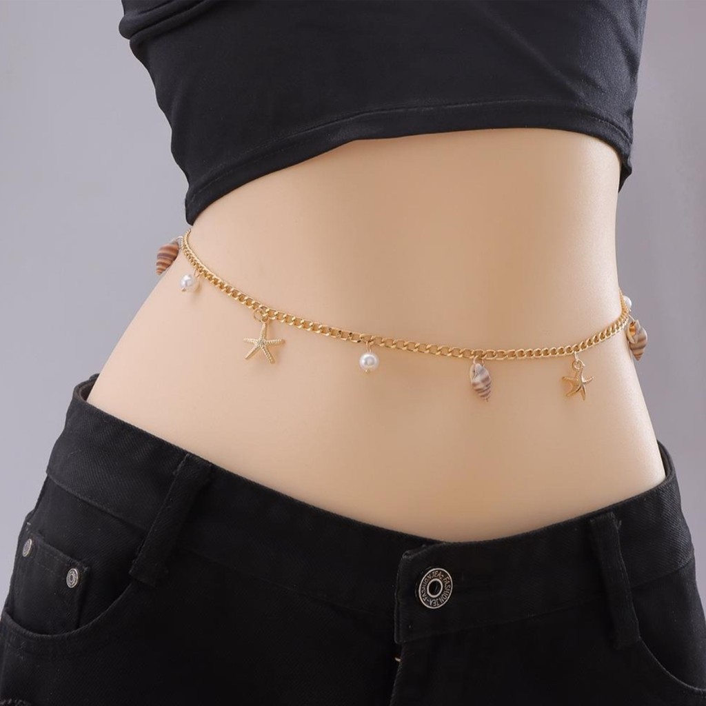 โซ่เอวเซ็กซี่ เปลือกหอยดาว ตกแต่งด้วยไข่มุก โลหะผสม สไตล์วินเทจ มีหลากหลายแบบให้เลือก ส่งไวจากไทย