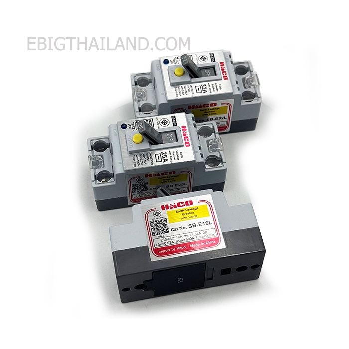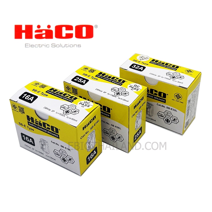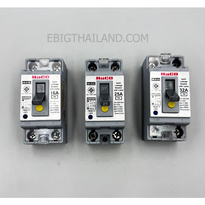 HACO เซฟตี้เบรคเกอร์ป้องกันไฟดูด มีสัญญาณไฟสีฟ้าโชว์ ขนาด 16A,25A,32A (แถมกล่องครอบ)
