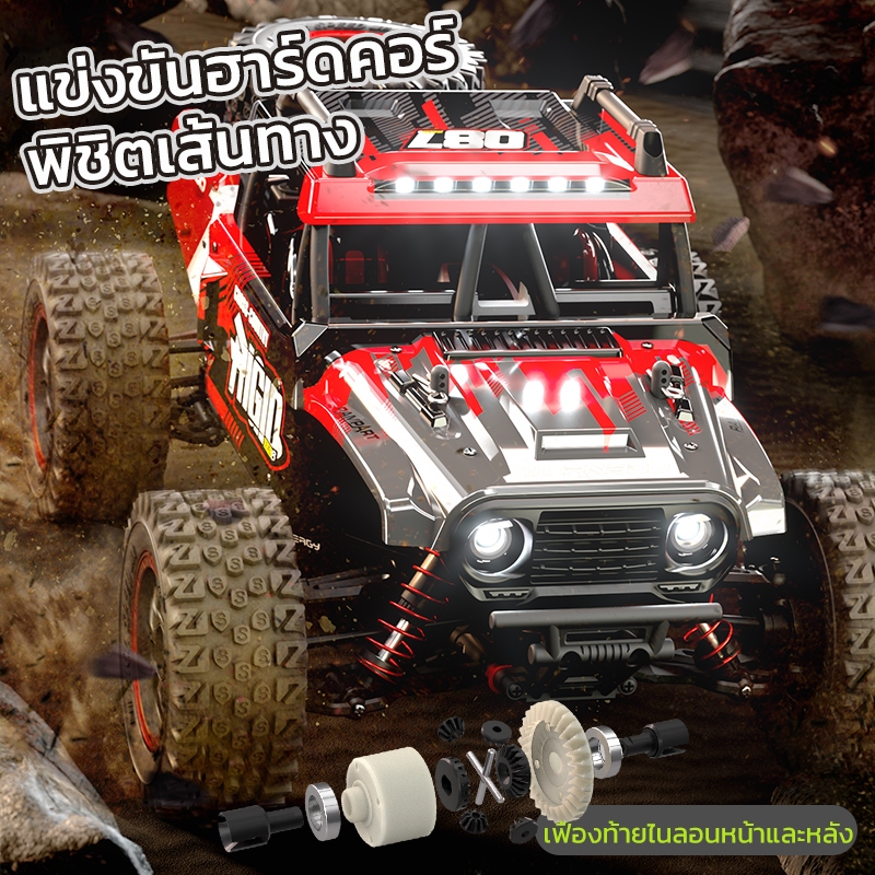 รถบังคับวิทยุ RC ออฟโรด 65km มอเตอร์คาร์บอน 390 ระบบส่งกำลังโลหะ 4WDรถบรรทุกไฟฟ้าออฟโรดอัตราส่วน1:12