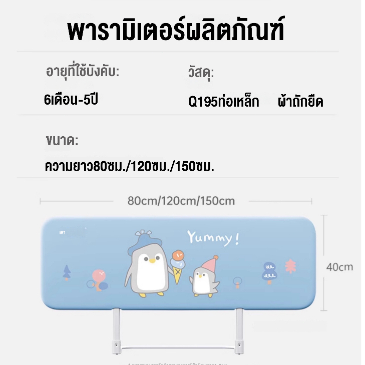ที่กั้นเตียง คอกกั้นเด็ก ที่กั้นเตียงเด็ก พับเก็บได้ ไม่ต้องประกอบ กันตก ความสูงปรับได้ 0-5ขวบ