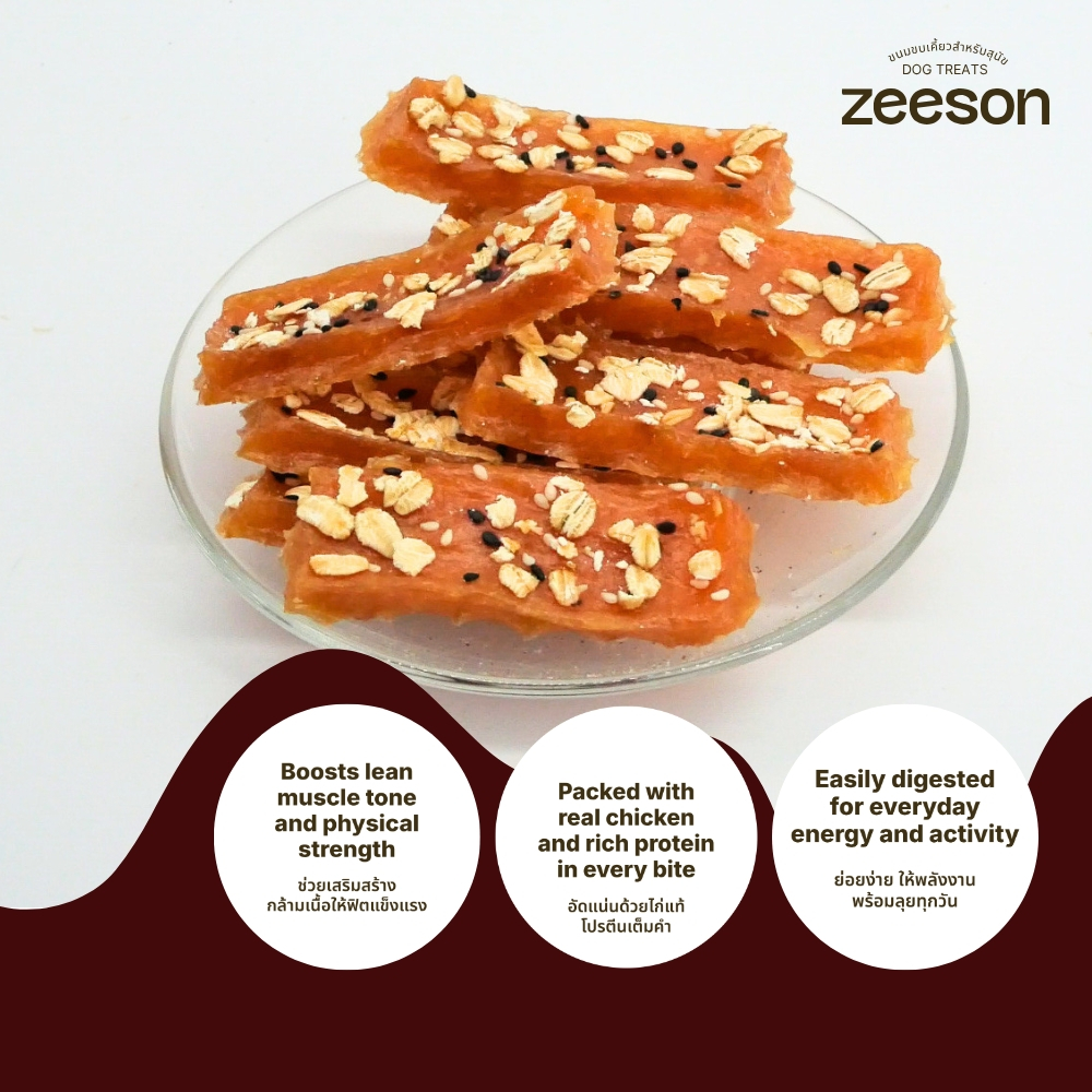ZEESON ขนมสุนัข ไก่แท่งธัญพืช ไก่แท้100% โปรตีนสูง คุณภาพเกรดส่งออก ขนมหมา ขนมขัดฟันหมา ขนมหมาเคี้ยวเล่น