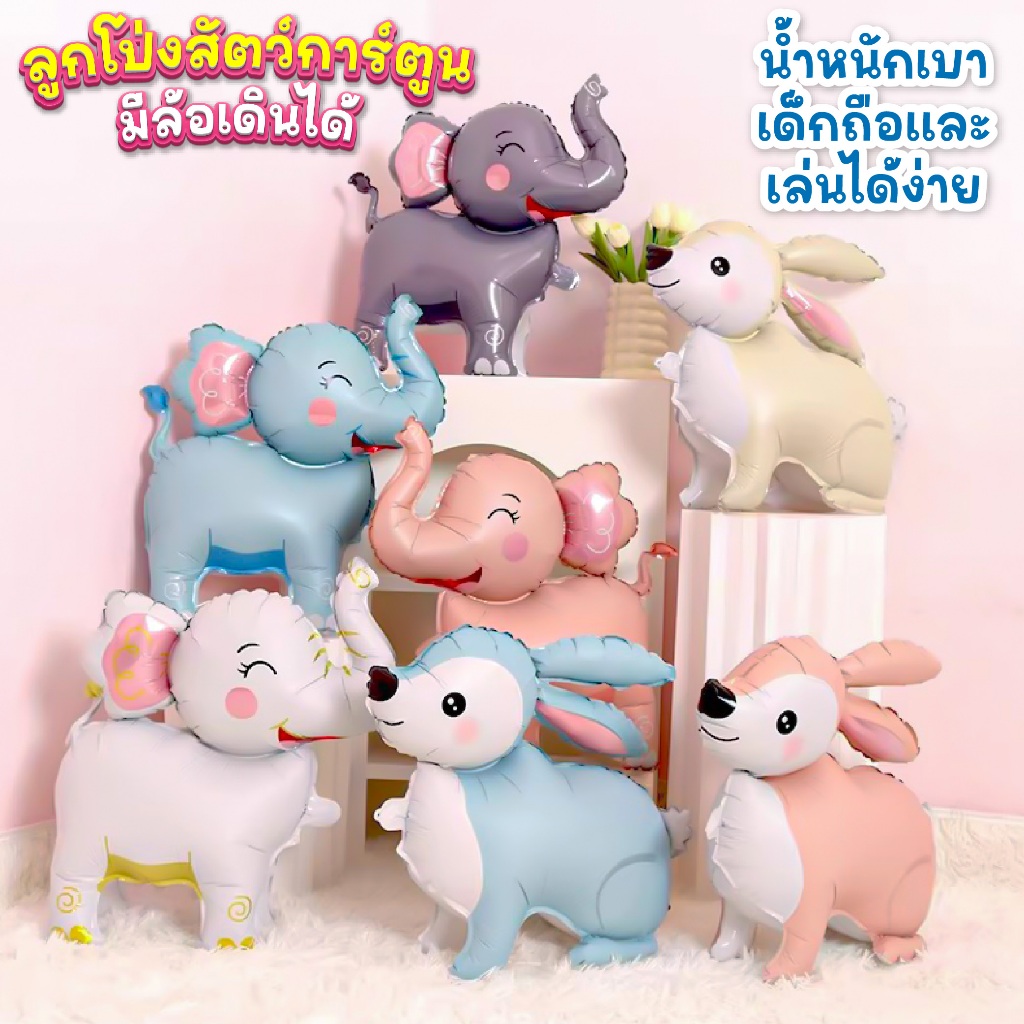 ลูกโป่งสัตว์การ์ตูน มีล้อ เลื่อนได้ (มีให้เลือก 50+ ลาย) ลูกโป่งเด็ก ของตกแต่งปาร์ตี้ ลูกโป่งฟอยล์