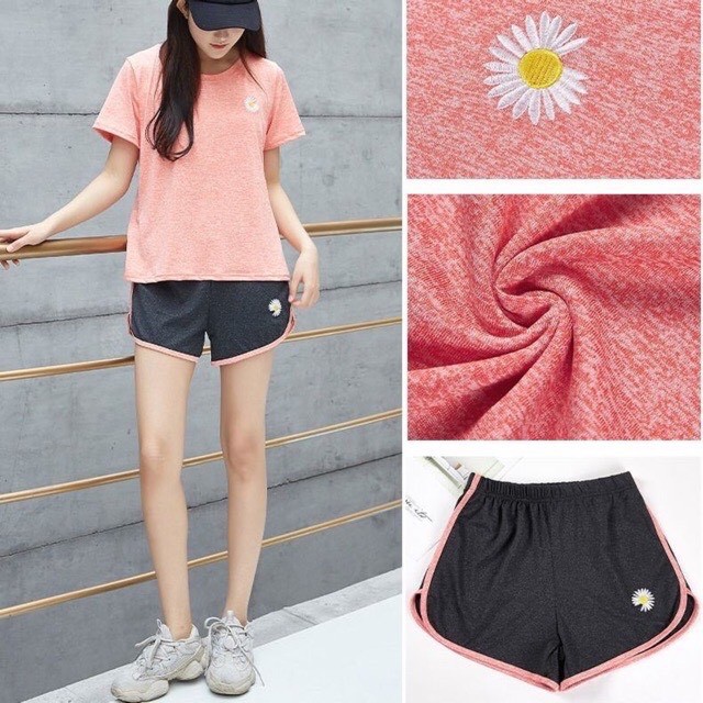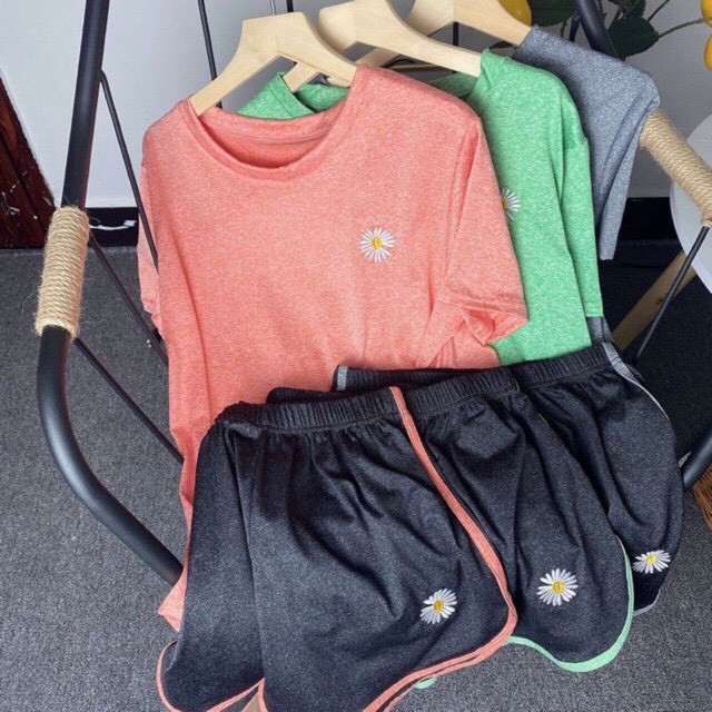 รหัส B2-00 เซตเดซี่ ชุดออกกำลังกาย ชุดเซตเดซี่ เซ็ต2ชิ้น เสื้อ+กางเกง ปักลายเดซี่ ชุดลำลอง