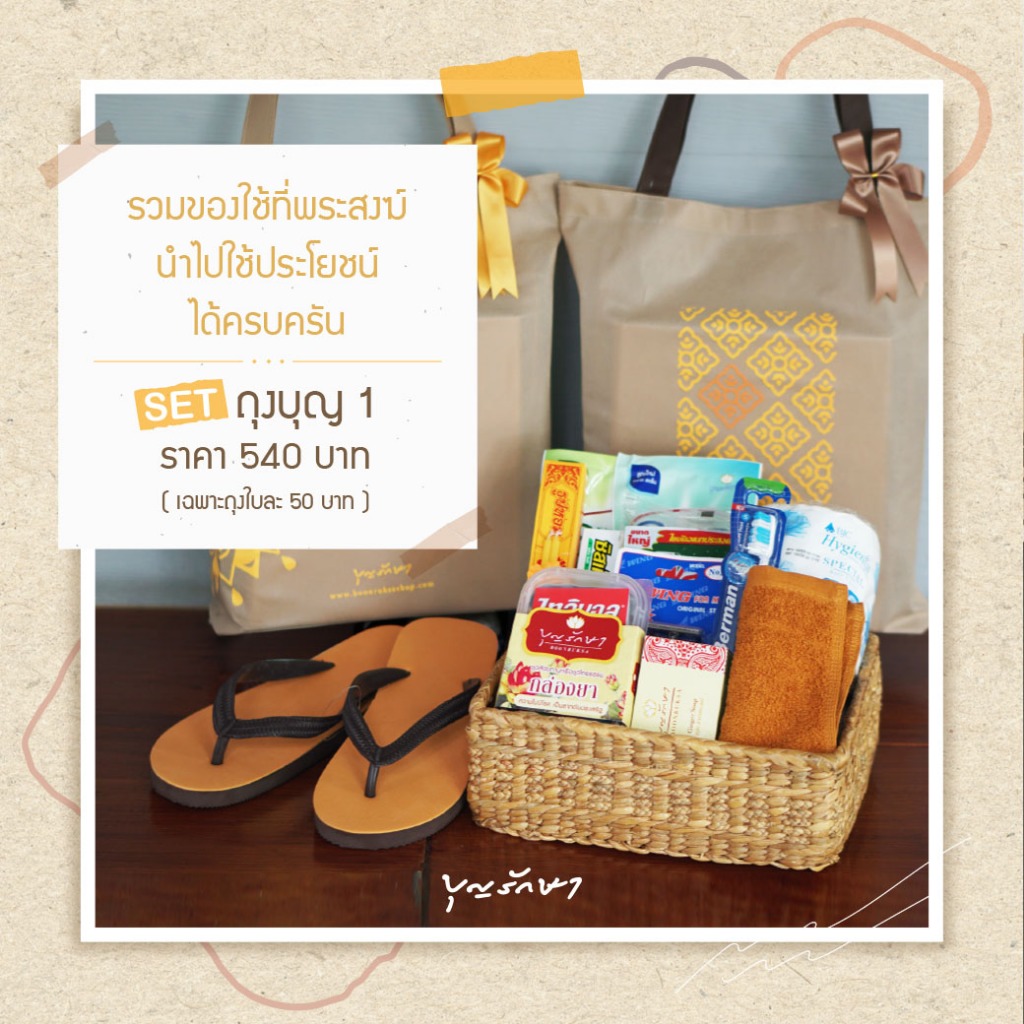 สังฆทานแนวใหม่ สังฆทานถุงบุญ2 ลาย6,7,8 (ถุงรักษ์โลก) ใช้ประโยชน์ได้ครบ by บุญรักษา | ชุดถวายพระ เครื่องไทย