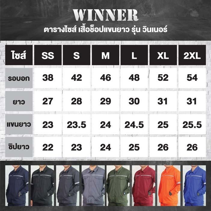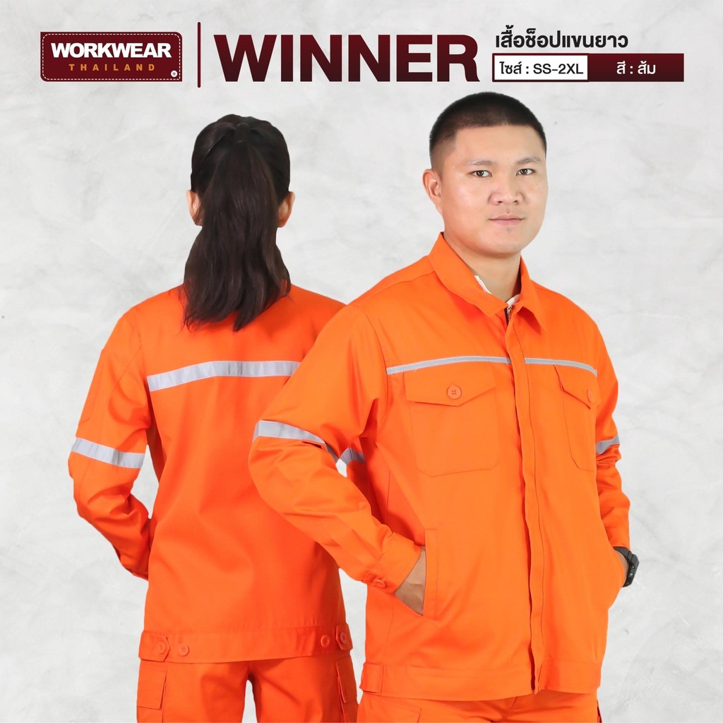 WORKWEAR THAILAND :[3 ตัวถูกกว่า] เสื้อช็อปแขนยาว รุ่น Winner ซิปหน้าซ่อน ติดแถบสะท้อนแสง (3 ตัว)