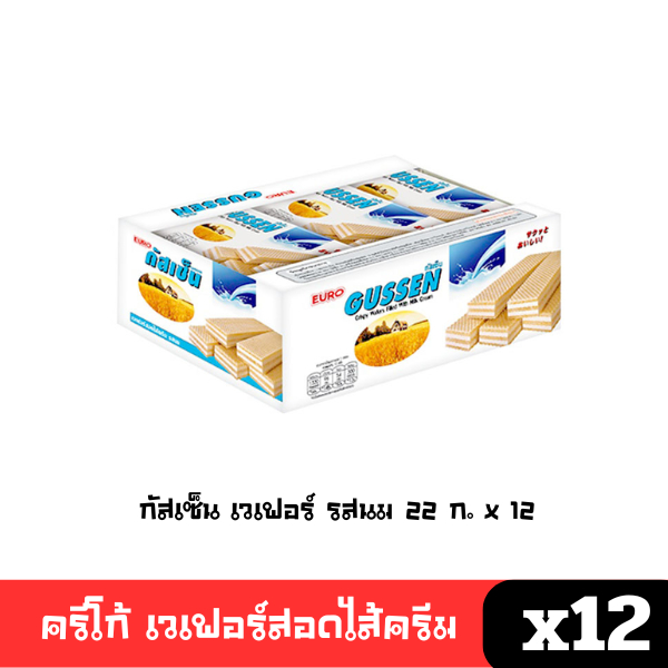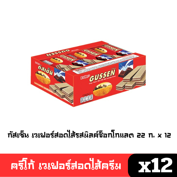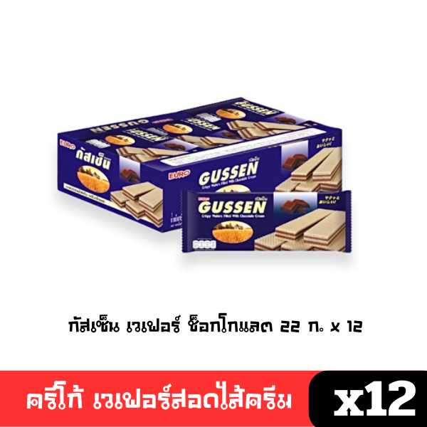 [พร้อมส่ง🚛] ขนม Gussen กัสเซ็น ยกแพ็ค 12ชิ้น เวเฟอร์สอดไส้ นม ช็อคโกแลต นมช็อคโกแลต อร่อย กรอบ หวาน 🔔