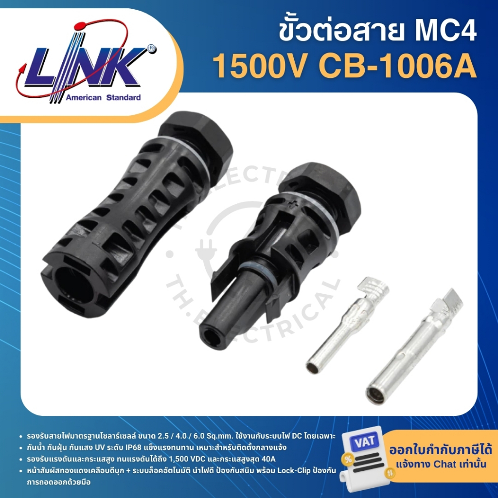 LINK MC4 ขั้วต่อสายไฟโซล่าเซลล์ CONNECTOR LOCKING(pair) CB-1002A CB-1006A 1500V 1000V TEC